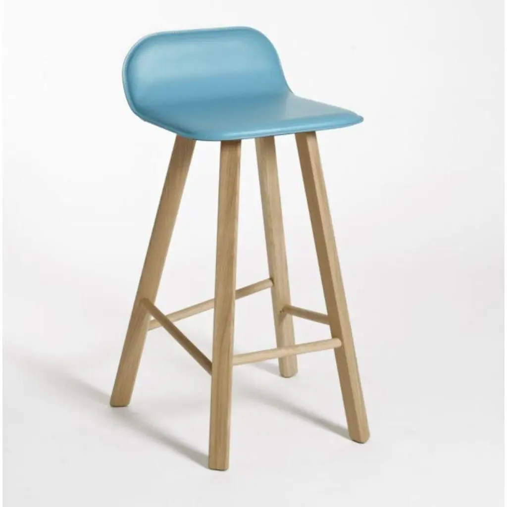 Set Of 2, Tria Stool, Low Back, Leather Azul By Colé Italia