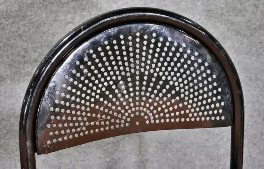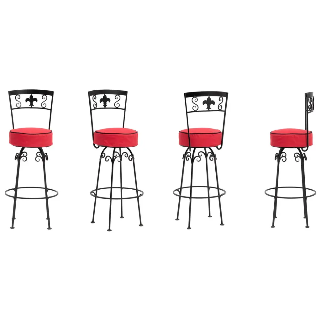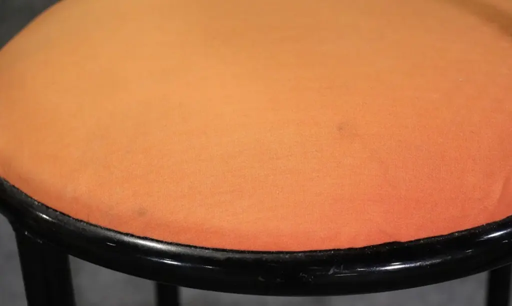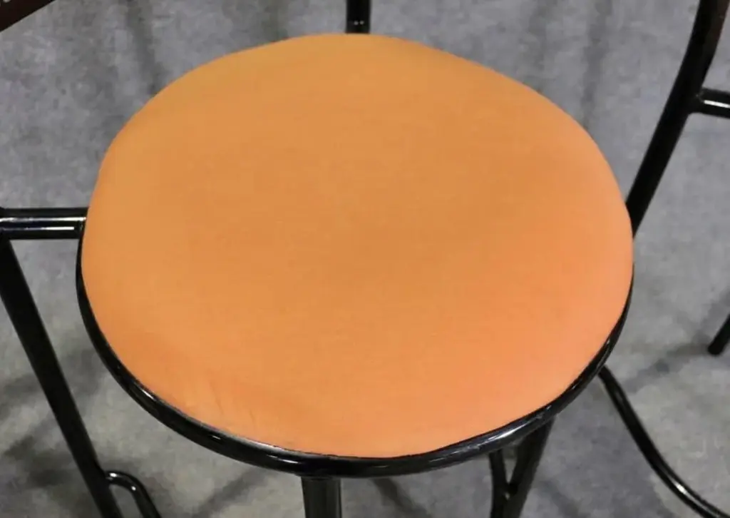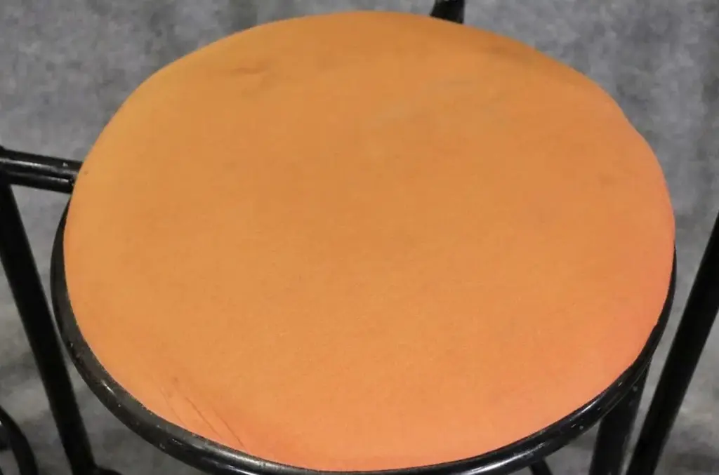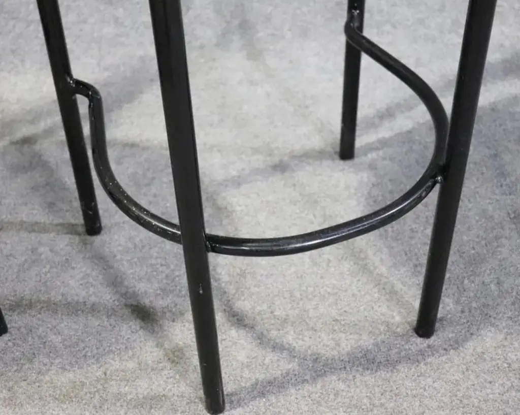 6 AvailableListing is for 3 black painted metal stools with bright orange seats.Half round perforated seat back.Please confirm location NY or NJ