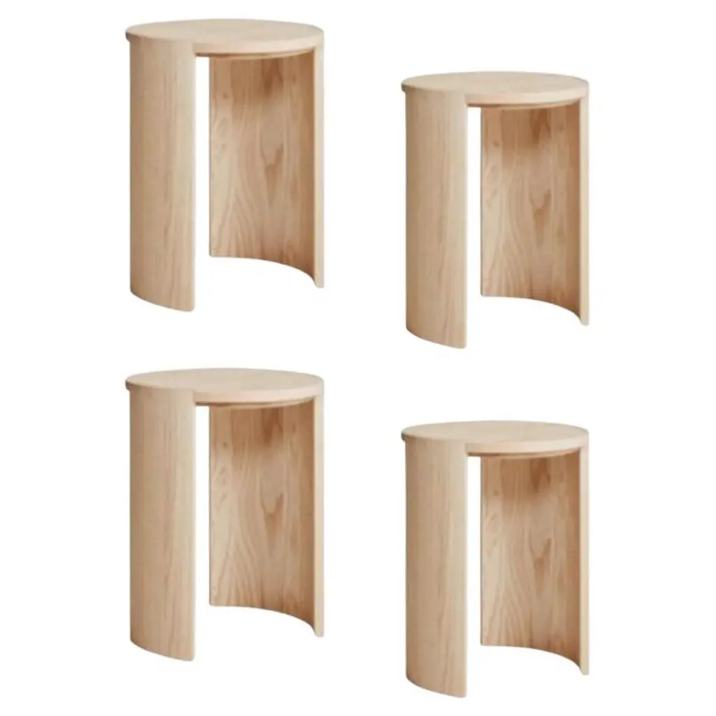Set of 4, Airisto side tables/ stools, stained black by Made By Choice with Joanna LaajistoDimensions: D35 x H45 cmMaterials: Solid ash. Finishes: Natural ash / Painted blackAlso available: natural & custom order.The Airisto collection’s furnishings are multifunctional – they can be used as a side table, stool and a bench. The natural ash accents the beautiful features of the wood. In addition to the light wood, the other colour option is stained black, which highlights the shape of the product, representative to Laajisto’s work. ”A good product has to fit in different environments from the modern and minimalist to rich and classical,” explains Laajisto. The simple and modest design language of the Airisto furniture emphasizes the asymmetric shape of the foot structure.About Made by Choice: Nordic Happiness. Nordic Happiness is our grand theme and guiding star. Studies show that Nordic people are among the happiest on Earth. Nordic happiness is composed of authentic values and sustainable choices. The vision of Choice is based on the added value of collective creation while promoting sustainable Nordic values through authentic design. Rooted in the traditions of Finnish woodworks, Made by Choice is a creative powerhouse of collaborative thinkers, believers and makers, establishing a global brand for the 21st century. Committed to producing durable, bold and innovative designs, we combine contemporary woodworking methods and modern technology. Halikko is home to our 4000 square metre campus where we turn abstract concepts into tangible objects. Our team in our office in Helsinki coordinates all operations and installations. Made by Choice's agile, purpose driven approach means all new products are developed on demand, for a specific project and need, and carries the authentic story of it's reason of existence. Our products are developed and manufactured at our own factory in south-western Finland by some of the best craftsmen in the world. Choice is inspired by heritage and Nordic urban lifestyle. We are driven to explore the boundaries of our discipline to create new narratives. Choice collaborates with leading designers and ambitious interior architects on site-specific projects to create new urban spaces.Choice was founded by Lasse Laine, Sebastian Jansson and Niclas Ahlström – based on the common vision and mutual values to create a distinctive, value-driven brand and a new design heritage.