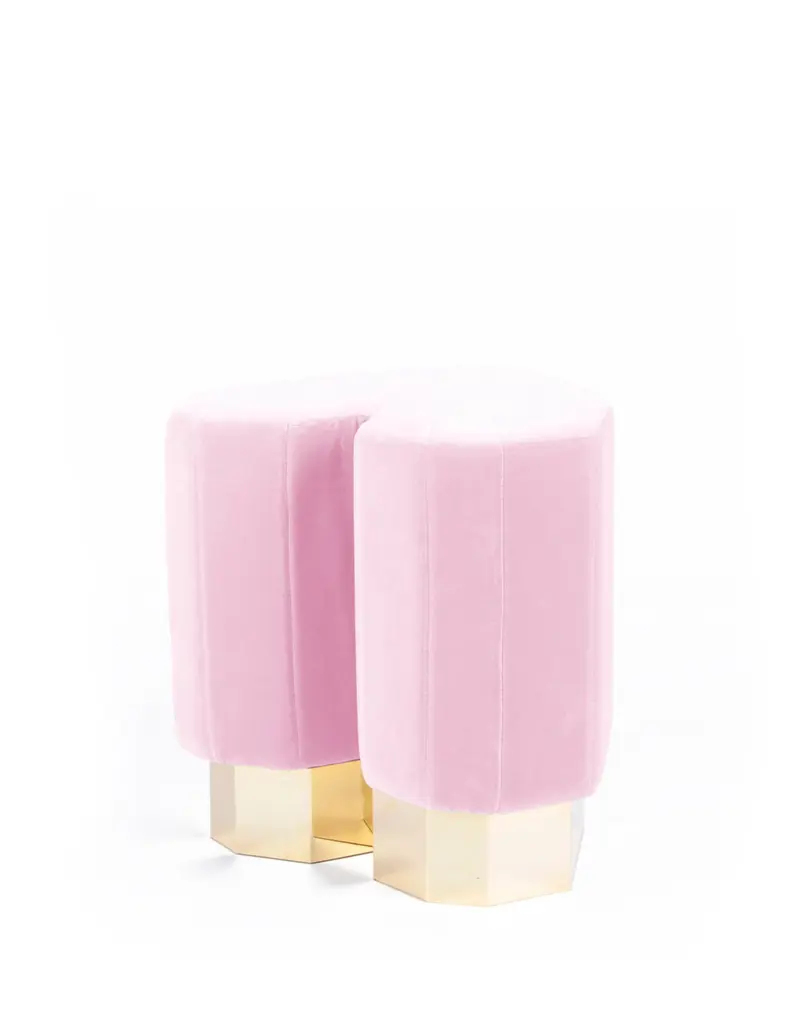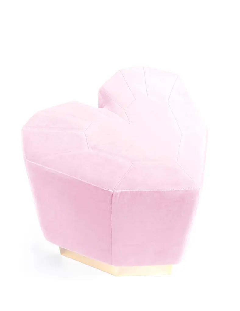 Set of 4 light pink queen heart stools by Royal StrangerDimensions: 46 x 49 x 43 cmDifferent upholstery colors and finishes are available. Brass, copper or stainless steel in polished or brushed finish.Materials: Velvet heart shape upholstery on the top of a stainless steel coated in brass plated foot.The Queen heart stool is a luxurious piece that will make you travel to another dimension. A stool of desirable love combined with the pastel colors to give a sense of peace and magic storytelling. The willing to make people seat and feel happy. Royal stranger is an exclusive furniture brand determined to bring you the best unique pieces of art and design.Fusing design, art and the best craftsmanship, they strive to deliver the best state of the handmade art furniture. The design team works every day to create meaningful products that represent values such as passion, function, aesthetics and know-how. Values that are meant to represent Royal stranger’s DNA. This dedication is present at all stages of production and the combination of craftsmanship and innovative design contributes toour final purpose: to produce certified high-quality products, made with passion and expertise and using royal materials such as gold leaf, rich woods and high quality lacquers.It was in 2013, as an architects, that Sofia Santos & Rui Santos started to push the boundaries of innovation in several retail design concepts for some of the best stores in Portugal. This will has always been present in their work, and that’s how the brand was born.