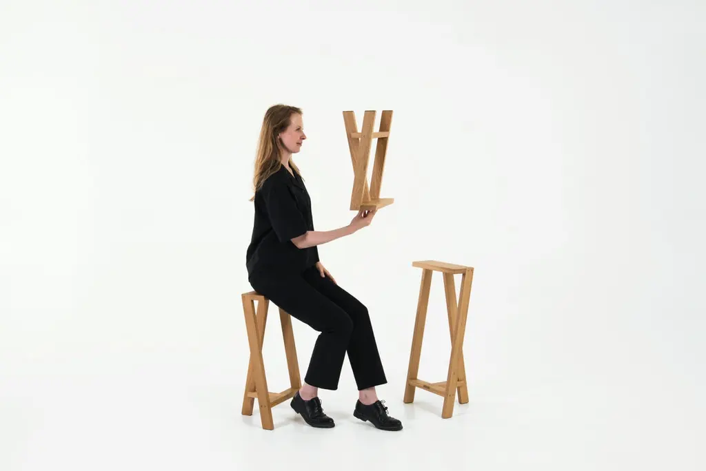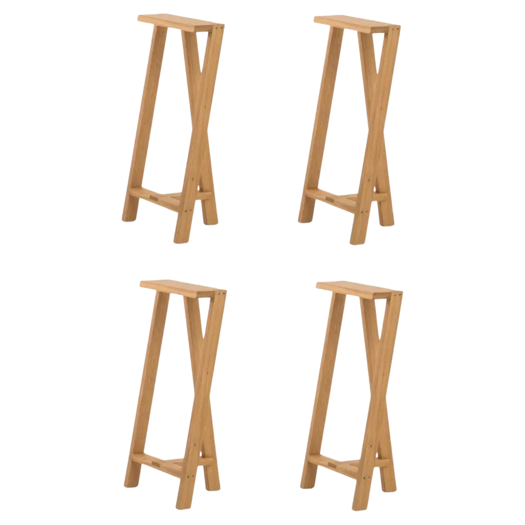 Set Of 4 Medium Pausa Oak Stool By Pierre-Emmanuel Vandeputte