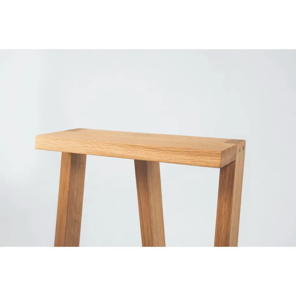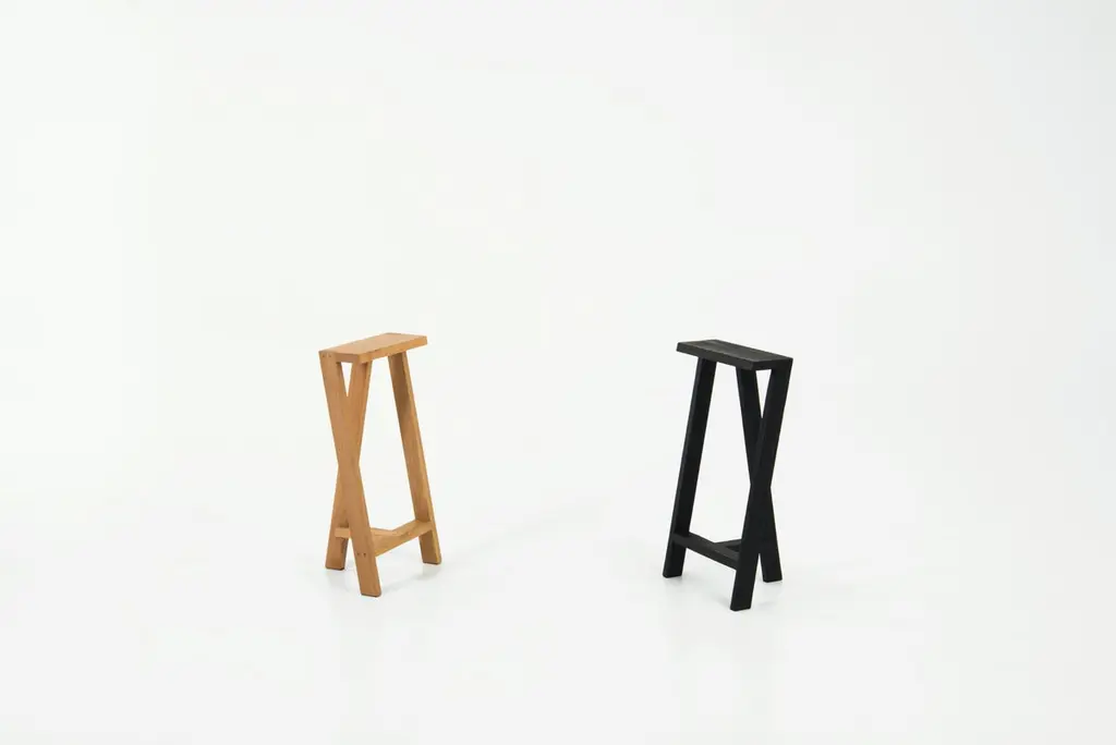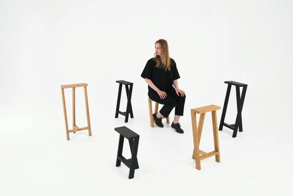 Set of 4 Medium Pausa oak stool by Pierre-Emmanuel VandeputteDimensions: D 27 x W 35 x H 65 cmMaterials: oak woodAvailable in burnt oak version and in 3 sizesPausa is a series of stools; 45cm, 65cm, or 80cm of assembled oak pieces. The narrow dimensions of the seat make for a perfect break on the three-legged structure. Whether seated at home or leaning over a bar counter, Pausa invites us to enjoy a moment’s peace.Pausa is produced and edited by Filantropie (Recyclart Fabrik), an organization that promotes young Belgian designers, while educating and employing individuals who are reintegrating society.Pierre-Emmanuel VandeputteBorn in 1991, Belgian designer Pierre-Emmanuel Vandeputte received his master’s degree in industrial design from the ENSAV La Cambre in 2014. Following his graduation, he opened his design studio in the Brussels city center.Since the beginning of his professional career, Pierre-Emmanuel has been invited to exhibit annually in cities such as Copenhague, Paris, and Milan. From conception to production, Pierre-Emmanuel imbues his designs with a sense of the surreal and a respect for craftsmanship. Each piece has a unique voice, and emotional power. Together, they speak to our more playful and curious nature, inviting us to live experiences unlimited by everyday expectations.His work is enigmatic, challenging what we consider to be evident in order to change habits and perceptions. His designs are indeed symbolic of an urge to break free from the mundane, to chase originality, while staying within the framework of the most noble materials.