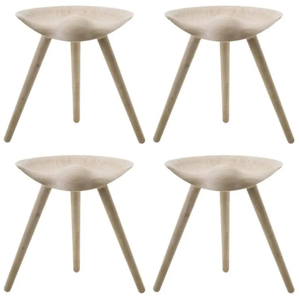 Set Of 4 Ml 42 Beige Oak Stools By Lassen