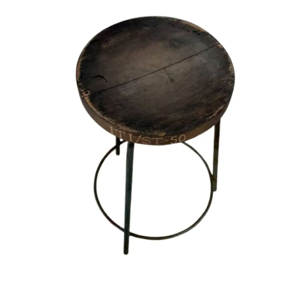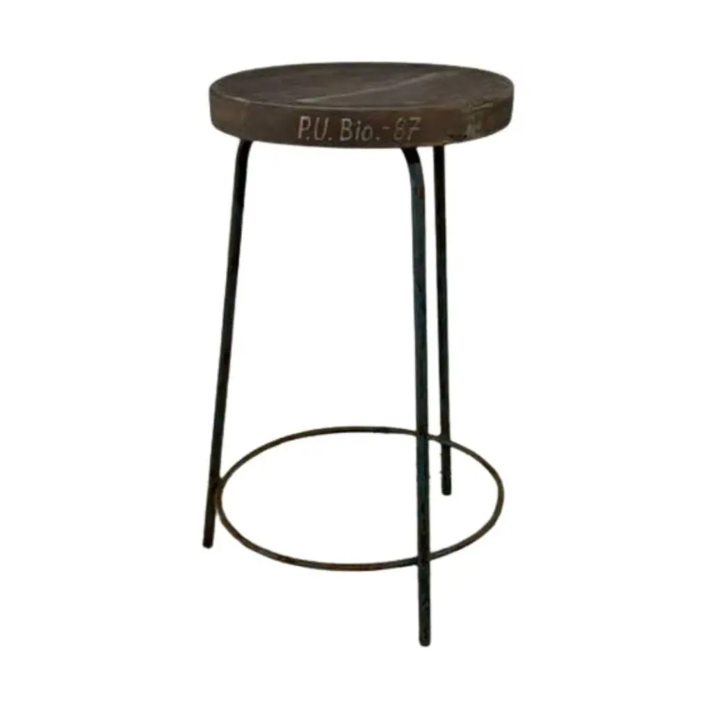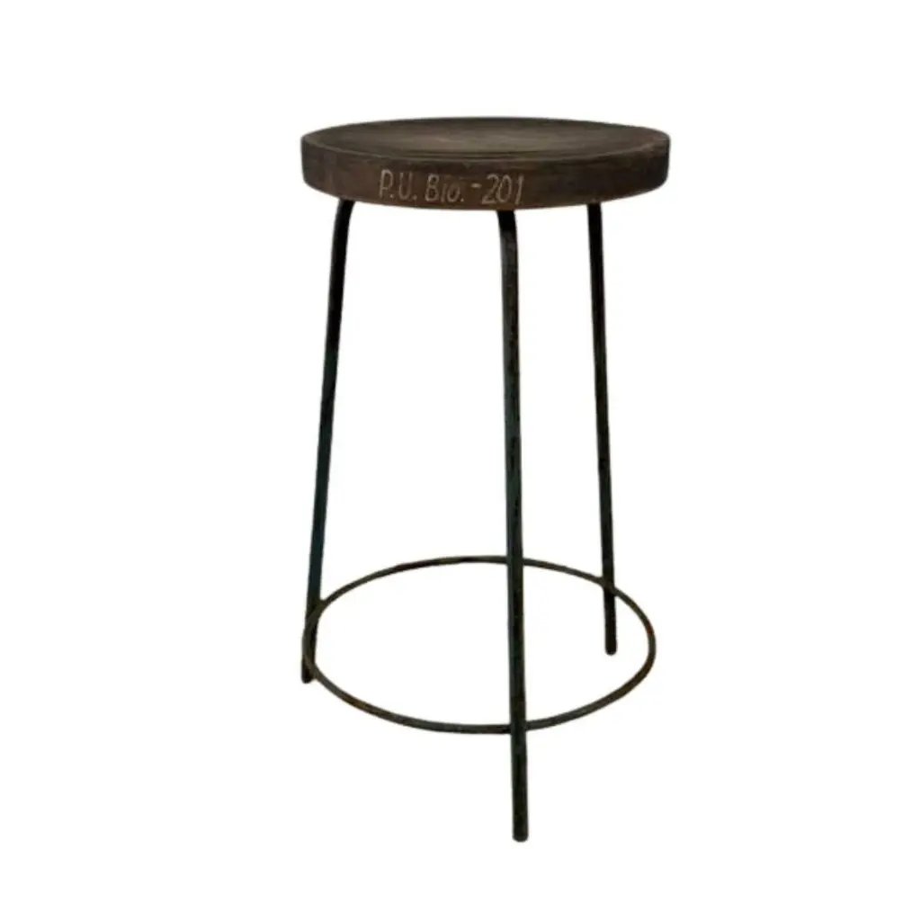 Authentic set of 4 Pierre Jeanneret PJ-SI-57-A stools crafted from solid teak and welded iron, featuring a distinctive round tripod base and a subtly concave seat. All stools have their original markings.P.U. Bio. -20P.U. Bio. -87P.U. Bio. -201I.T.I/ST-50- Dimensions: Height 61cm Seat Diameter 13 inches, 33 cm - Designer: Pierre Jeanneret- Design Year: 1952 - Production Period: 1952–1954- Origin: Chandigarh, India These stools were designed by Pierre Jeanneret for various departments of Punjab University in Chandigarh as part of the iconic mid-century modern furnishings created for Le Corbusier’s urban planning project.The stools are in excellent vintage condition, showing light wear consistent with its age and use. A timeless example of minimalist design and Indian modernism. They will be cleaned and lightly restored where needed.- Provenance: Panjab University, Chandigarh – Scientific Department, Sector 14 - Reference: Documented in Le Corbusier Pierre Jeanneret: L’Aventure Indienne by Éric Touchaleaume & Gérald Moreau (pg. 608, ref. PJ-SI-57-A)We welcome all enquiries and ship worldwide.