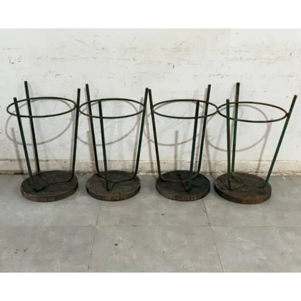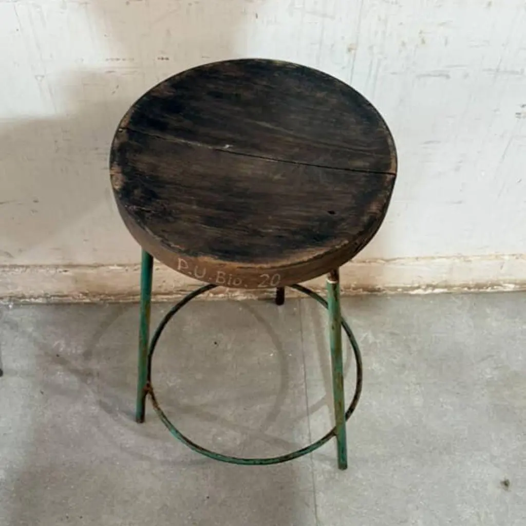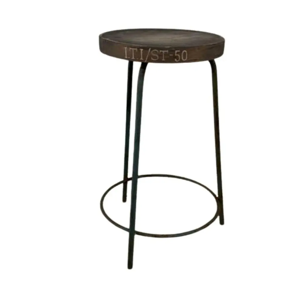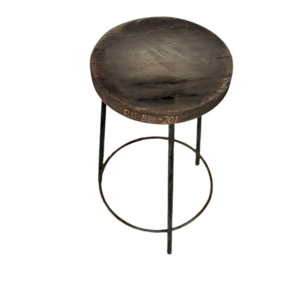 Authentic set of 4 Pierre Jeanneret PJ-SI-57-A stools crafted from solid teak and welded iron, featuring a distinctive round tripod base and a subtly concave seat. All stools have their original markings.P.U. Bio. -20P.U. Bio. -87P.U. Bio. -201I.T.I/ST-50- Dimensions: Height 61cm Seat Diameter 13 inches, 33 cm - Designer: Pierre Jeanneret- Design Year: 1952 - Production Period: 1952–1954- Origin: Chandigarh, India These stools were designed by Pierre Jeanneret for various departments of Punjab University in Chandigarh as part of the iconic mid-century modern furnishings created for Le Corbusier’s urban planning project.The stools are in excellent vintage condition, showing light wear consistent with its age and use. A timeless example of minimalist design and Indian modernism. They will be cleaned and lightly restored where needed.- Provenance: Panjab University, Chandigarh – Scientific Department, Sector 14 - Reference: Documented in Le Corbusier Pierre Jeanneret: L’Aventure Indienne by Éric Touchaleaume & Gérald Moreau (pg. 608, ref. PJ-SI-57-A)We welcome all enquiries and ship worldwide.