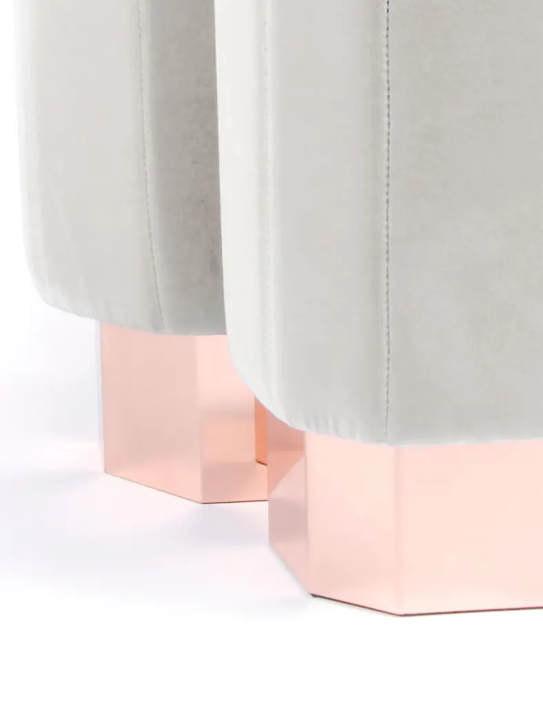 Set of 4 Queen heart stools by Royal StrangerDimensions: 46 x 49 x 43 cmDifferent upholstery colors and finishes are available. Brass, copper or stainless steel in polished or brushed finish.Materials: Velvet heart shape upholstery on the top of a stainless steel coated in brass plated foot.The Queen heart stool is a luxurious piece that will make you travel to another dimension. A stool of desirable love combined with the pastel colors to give a sense of peace and magic storytelling. The willing to make people seat and feel happy.Royal Stranger is an exclusive furniture brand determined to bring you the best unique pieces of art and design.Fusing design, art and the best craftsmanship, they strive to deliver the best state of the handmade art furniture. The design team works every day to create meaningful products that represent values such as passion, function, aesthetics and know-how. Values that are meant to represent Royal Stranger’s DNA. This dedication is present at all stages of production and the combination of craftsmanship and innovative design contributes toour final purpose: to produce certified high-quality products, made with passion and expertise and using royal materials such as gold leaf, rich woods and high quality lacquers.It was in 2013, as an architects, that Sofia Santos and Rui Santos started to push the boundaries of innovation in several retail design concepts for some of the best stores in Portugal. This will has always been present in their work, and that’s how the brand was born.