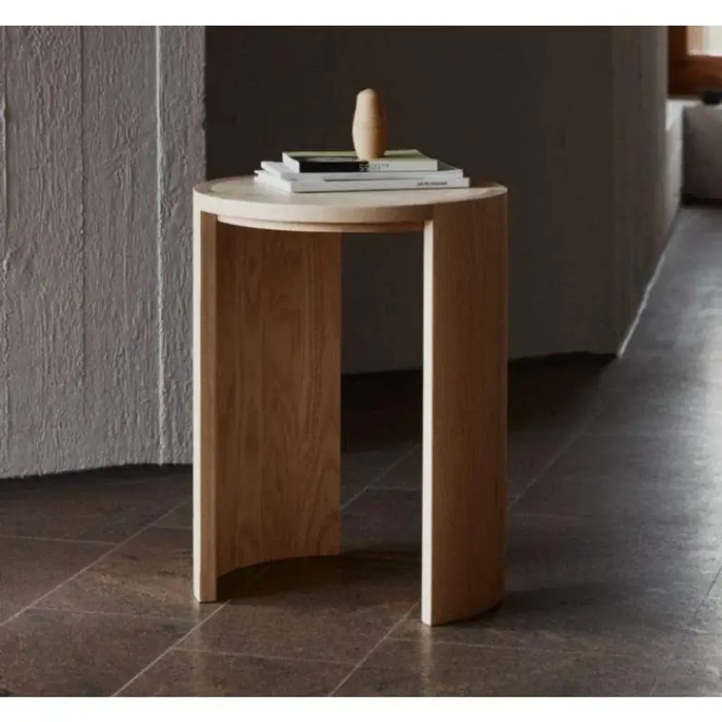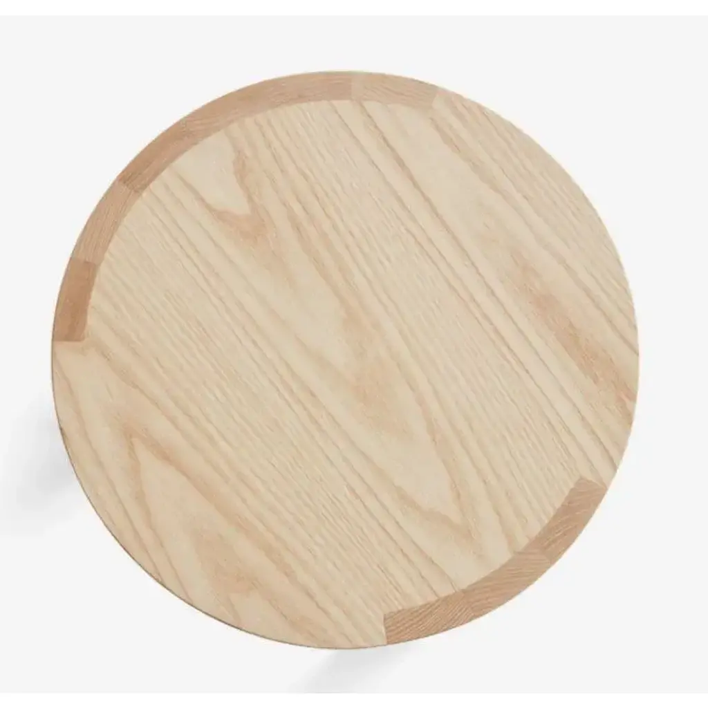 Set of 2, Airisto side tables/stools, natural color by Made By Choice By Choice with Joanna Laajisto Dimensions: D35 x H45 cm Materials: Solid Ash. Finishes: Natural Ash / Painted Black Also Available: Black & Custom Order. The Airisto collection’s furnishings are multifunctional – they can be used as a side table, stool and a bench. The natural ash accents the beautiful features of the wood. In addition to the light wood, the other colour option is stained black, which highlights the shape of the product, representative to Laajisto’s work. ”A good product has to fit in different environments from the modern and minimalist to rich and classical,” explains Laajisto. The simple and modest design language of the Airisto furniture emphasizes the asymmetric shape of the foot structure.