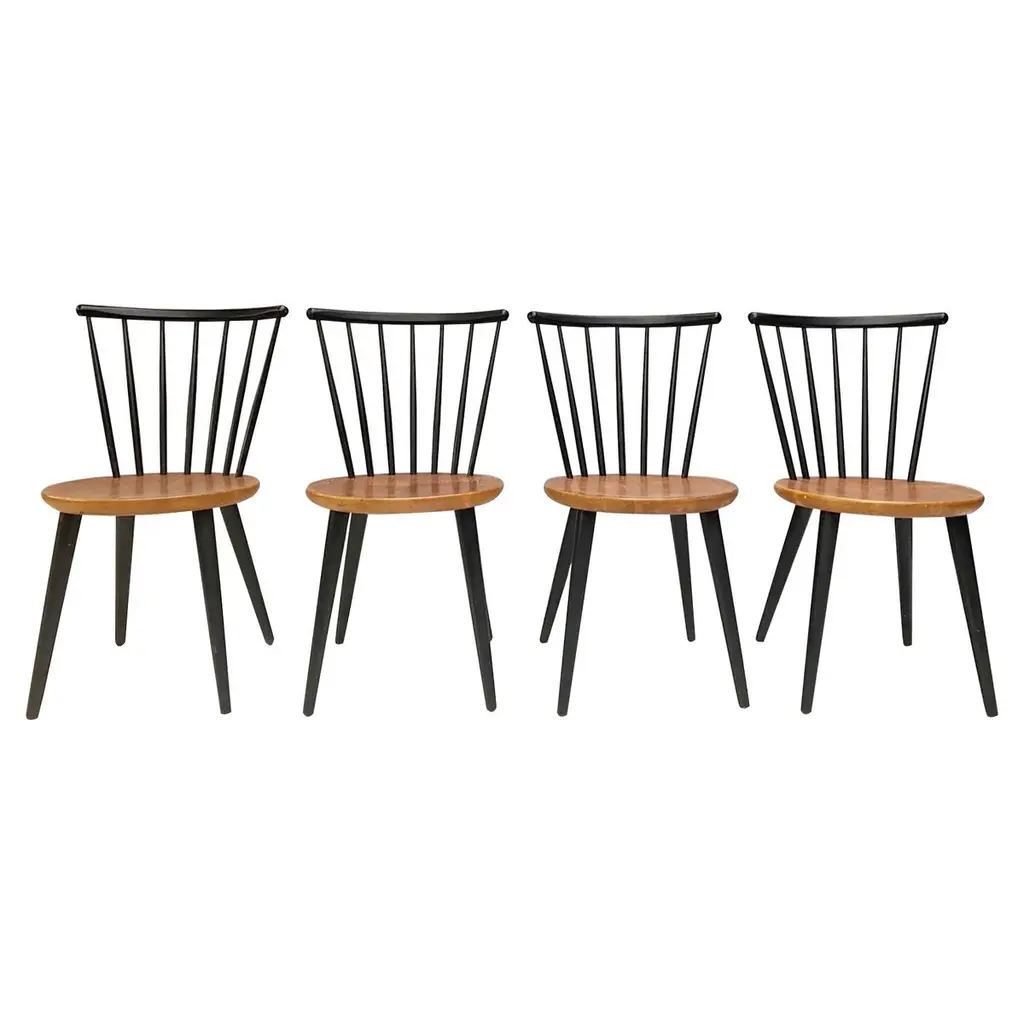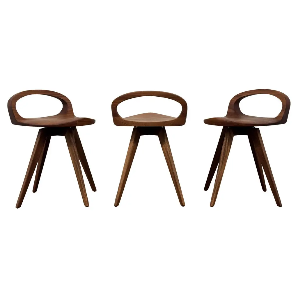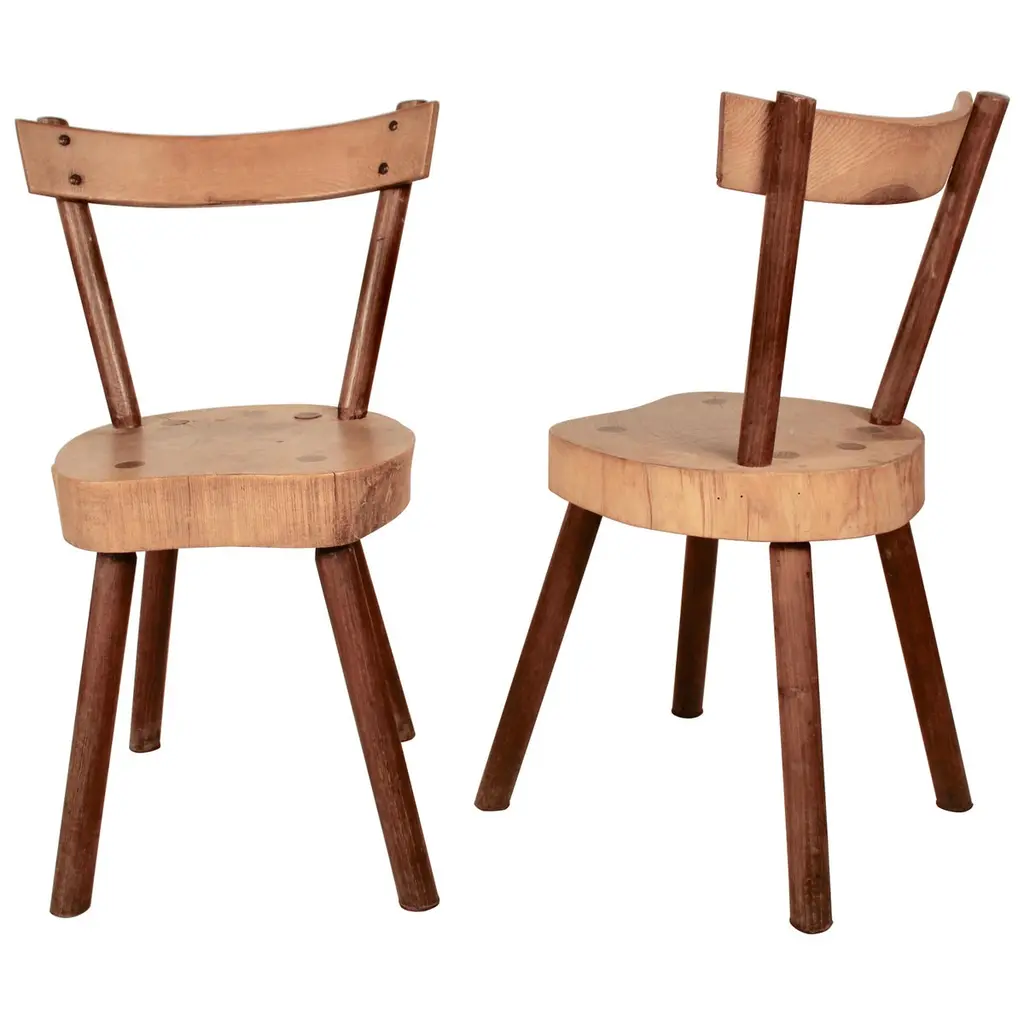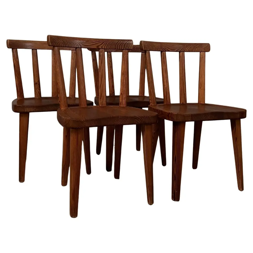Nordic stools in rich brown wood with four pegged legs. Very nice patina and good condition. Seat height 45 cm.