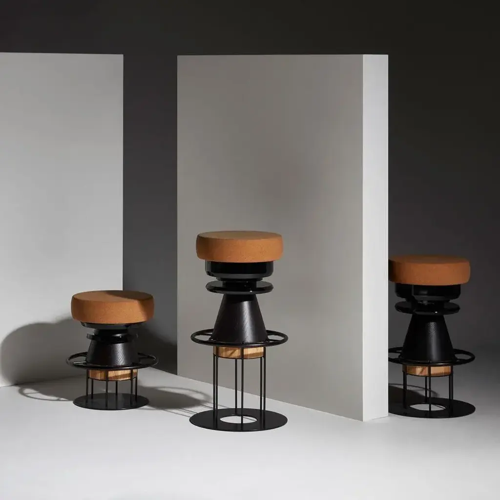 Set of 2 low black tembo stool, note design studio dimensions: d 36 x h 46 cm materials: lacquered steel structure, solid wood (beech) and lacquered mdf, natural cork base. Available in colorful version and in 3 sizes: h46, h64, h76 cm. Tembo is a stool made of stacked pieces of wood, metal, and cork. This ‘modern totem’ has a playful and bulky aspect recalling children’s toys and african tam-tam (tembo means elephant foot in swahili). Note design studio is a collective of architects, graphic & product designers. Established in sweden in 2008. They presented their first furniture pieces in 2010. Their style combines the elegant simplicity of nordic design with a playful and almost naïve identity. This piece is attributed to the mentioned designer/maker. It has no attribution mark and no official proof of authenticity, however it is well documented in design history. I take full responsibility for any authenticity issues arising from misattribution