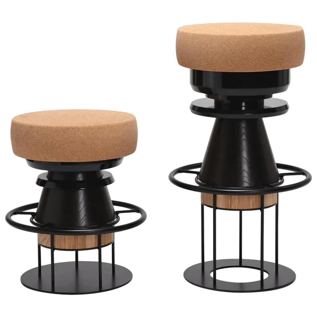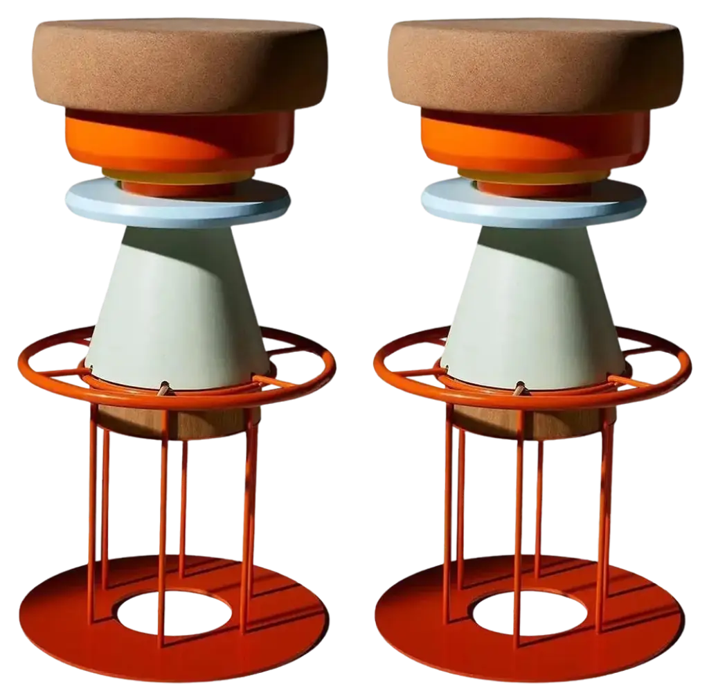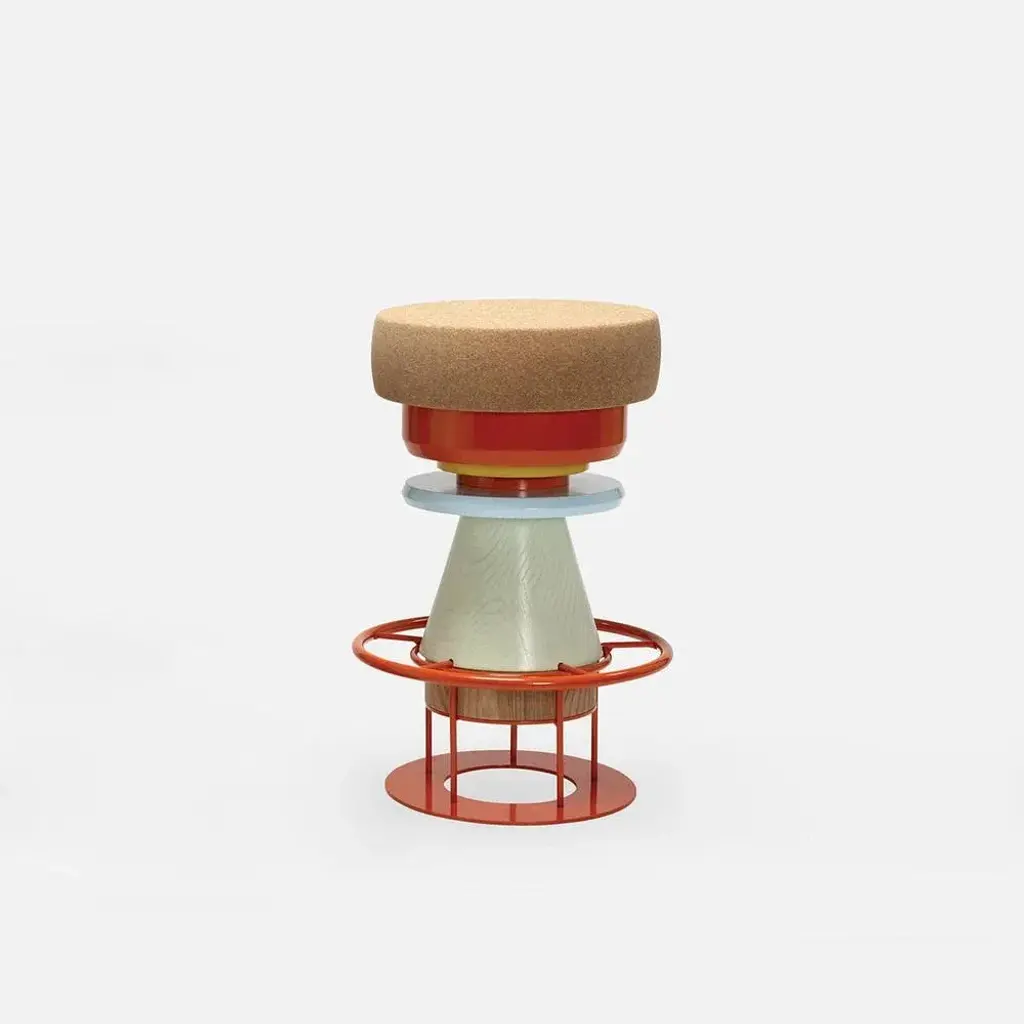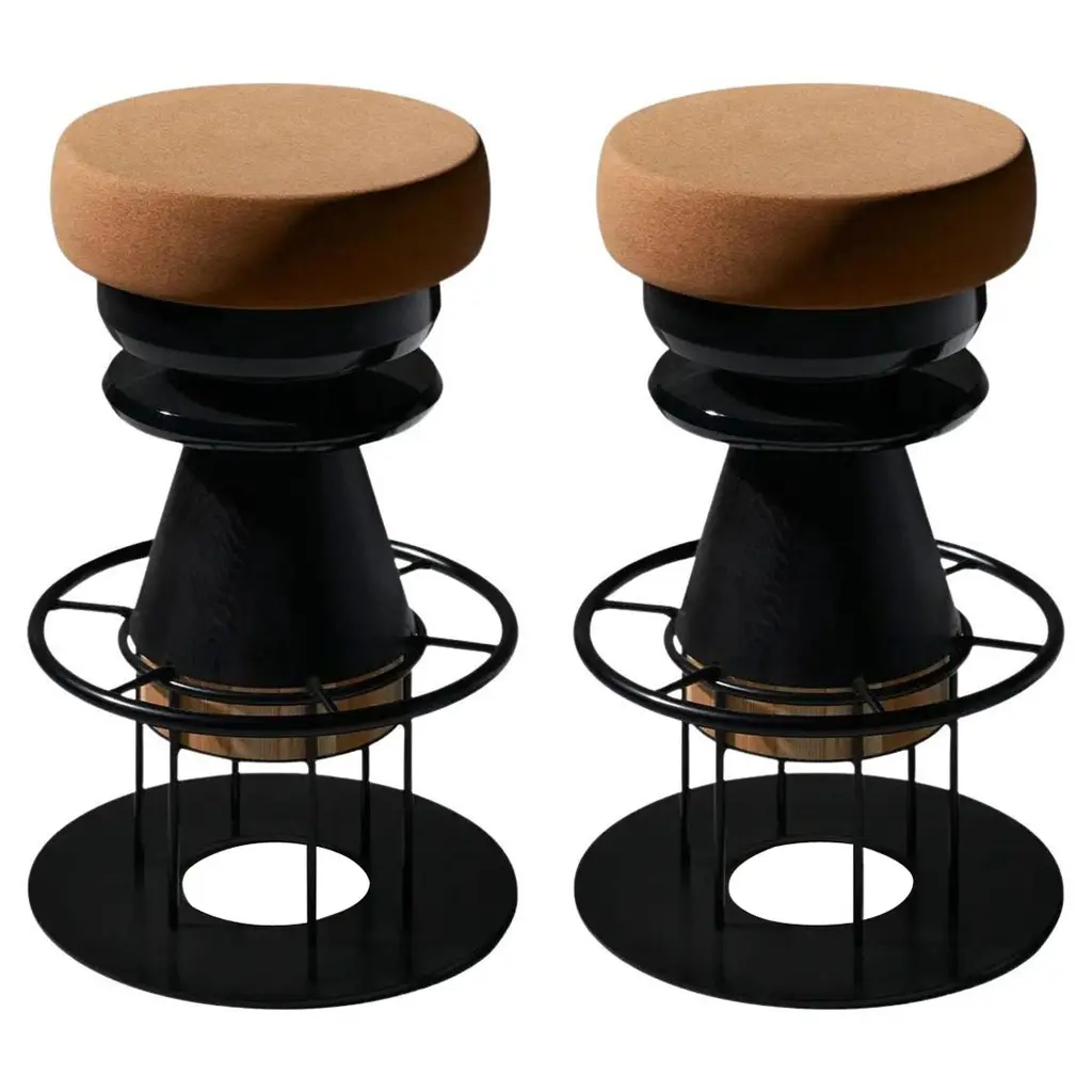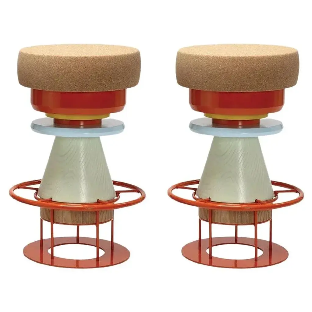 Set of 2 medium colorful tembo stool - note design studio dimensions: d 36 x h 64 cm. Materials: lacquered steel structure, solid wood (beech) and lacquered mdf, natural cork base. Available in black and 3 sizes: h46, h64, h76 cm. Tembo is a stool made of stacked pieces of wood, metal, and cork. This ‘modern totem’ has a playful and bulky aspect recalling children’s toys and african tam-tam (tembo means elephant foot in swahili). this piece is attributed to the mentioned designer/maker. It has no attribution mark and no official proof of authenticity, however it is well documented in design history. I take full responsibility for any authenticity issues arising from misattribution