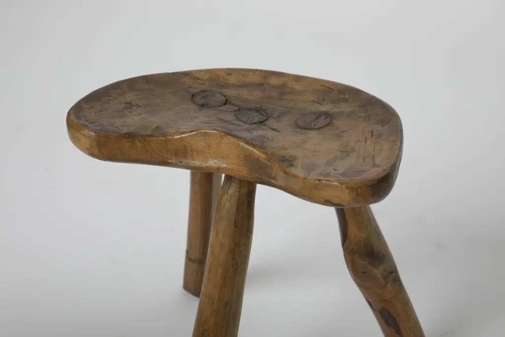 Interesting set of three solid wood stools, made by an Italian craftsman for a Tuscan home in the 1950s.