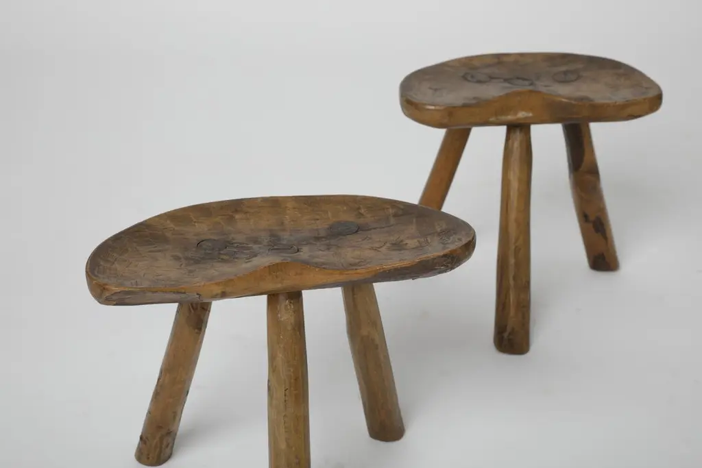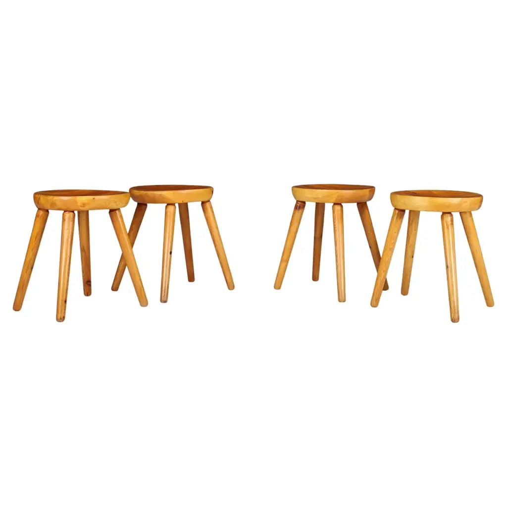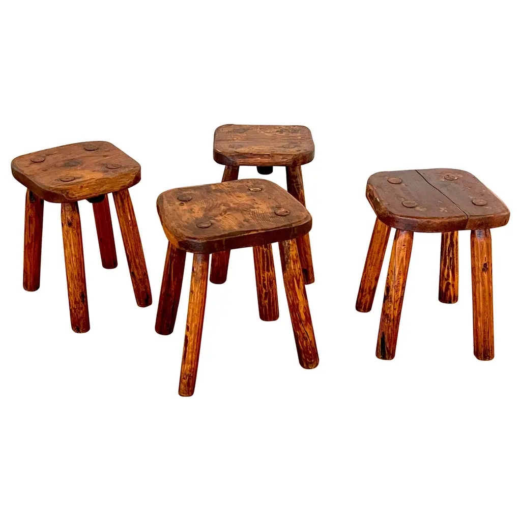 Set Of Three Primitive Wooden Stools, Italy, 1950s