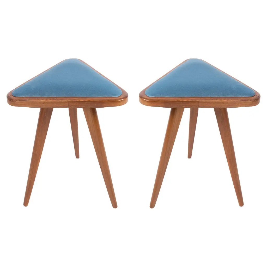 Set Of Two Blue And Red Velvet 20th Century Stools, 1960s