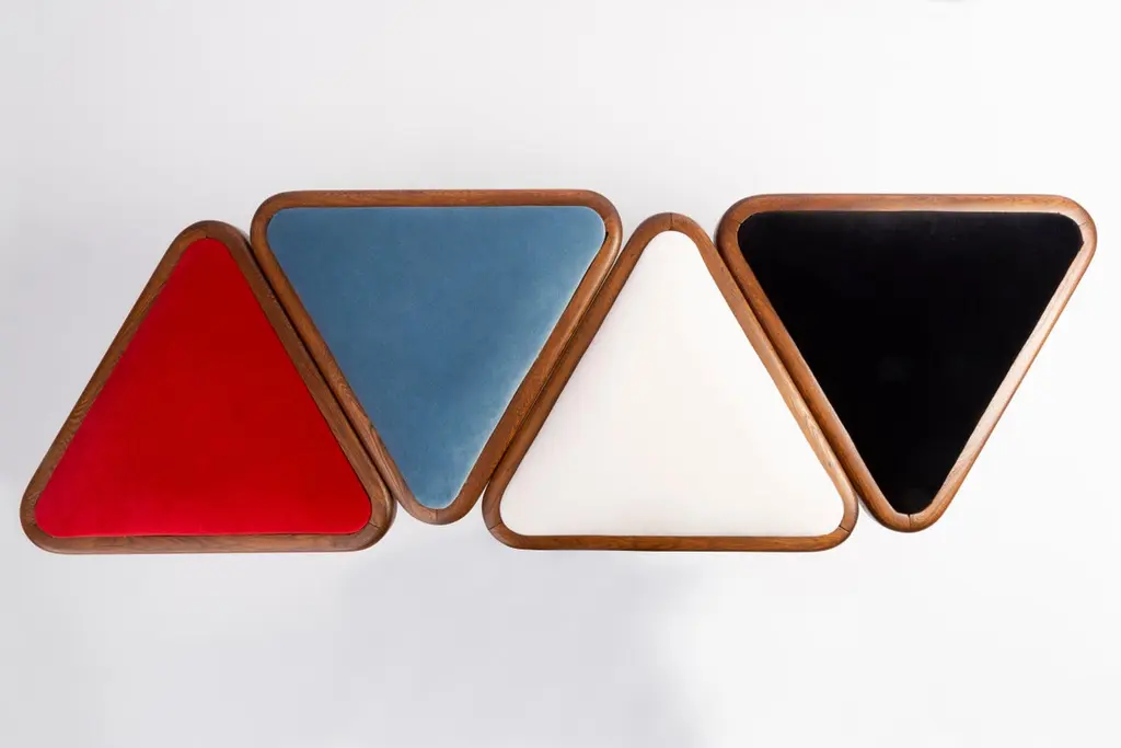 Set Of Two Blue Velvet 20th Century Triangle Stools, Europe, 1960s