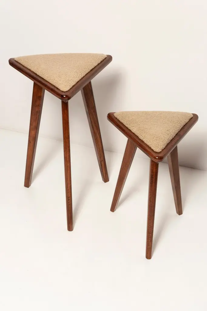 Set Of Two Camel Boucle Triangle Medium Stools, By Vintola Studio, Europe