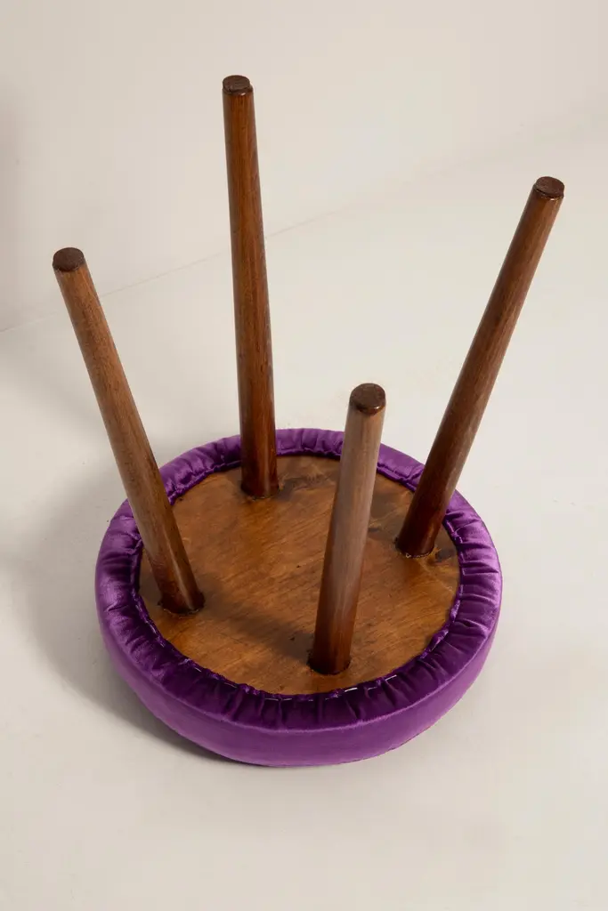 Set Of Two Mid-Century Glossy Purple Velvet Stools, Europe, 1960s