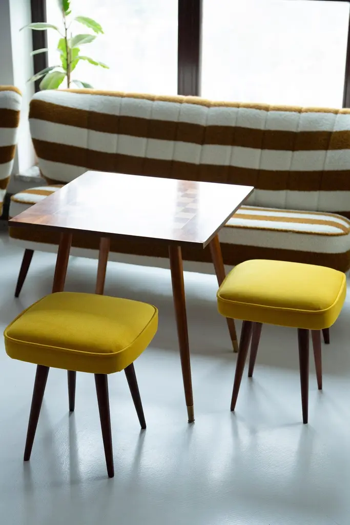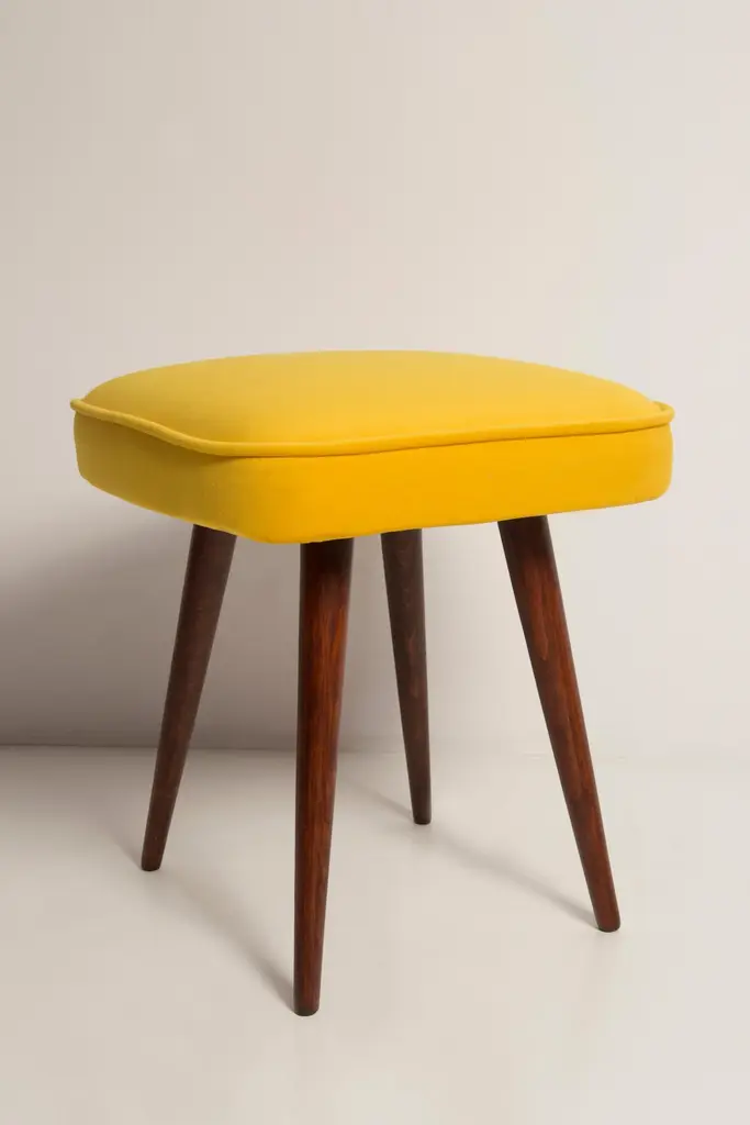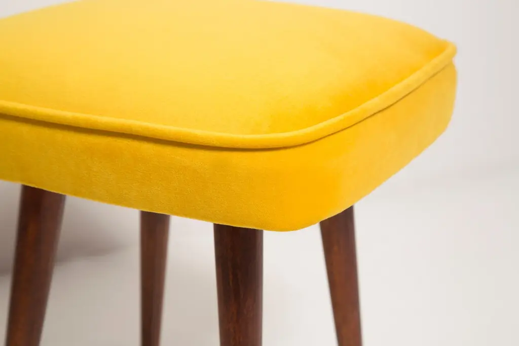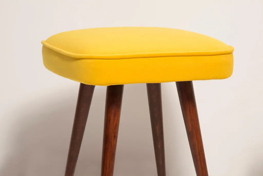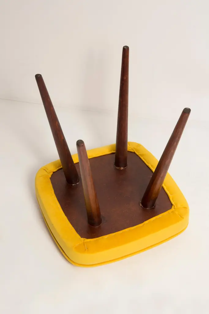 Stools from the turn of the 1960s and 1970s. Beautiful mustard velor upholstery. The stools consists of an upholstered part, a seat and wooden legs narrowing downwards, characteristic of the 1960s style. We can prepare this pair also in another color of fabric and wood.