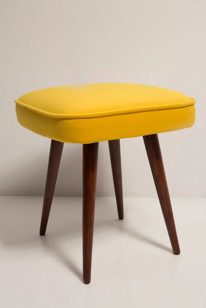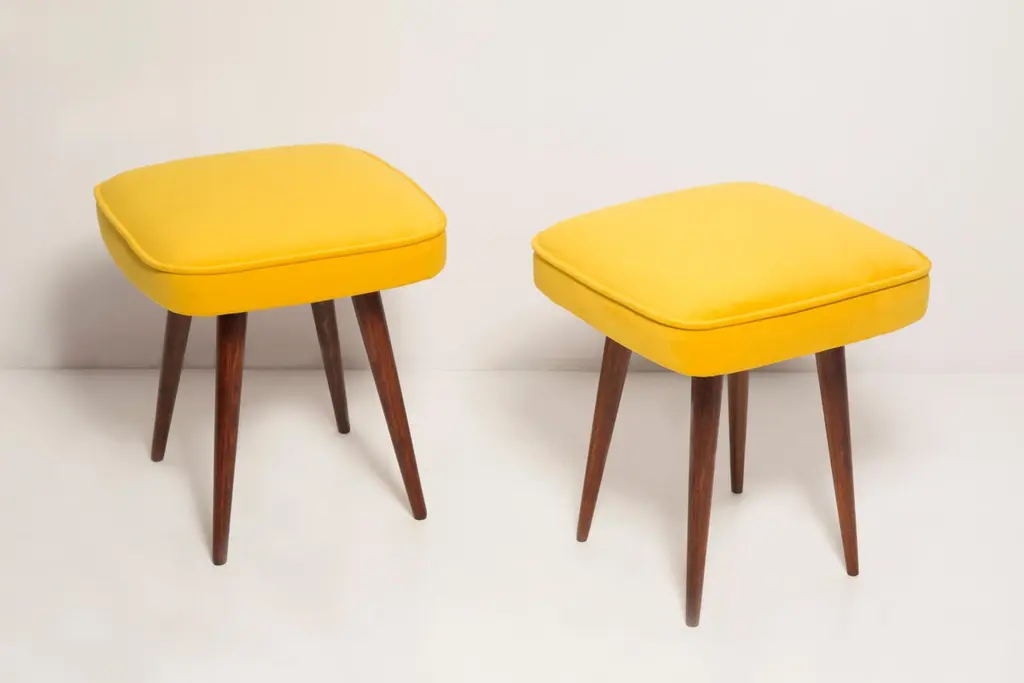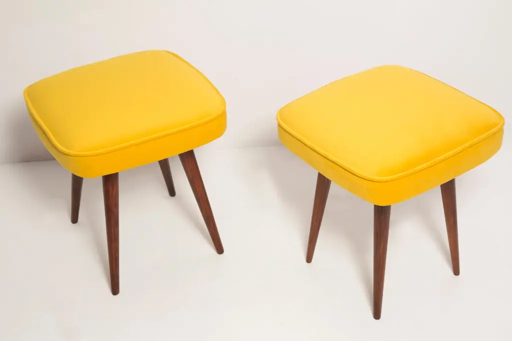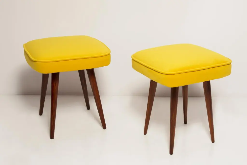 Set Of Two Mid-Century Yellow Velvet Foot Stools, Europe, 1960s