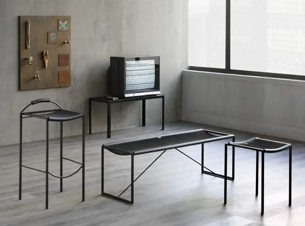 SGABELLO Basso belongs to the 1984 collection.Frame: Embossed BlackSeat: Black thousand points rubber