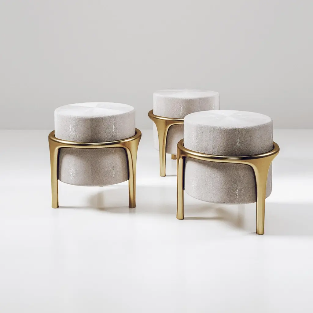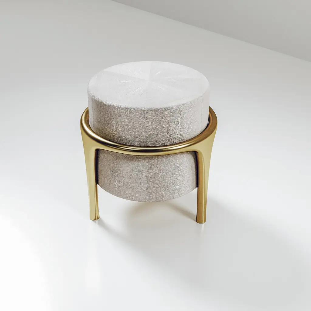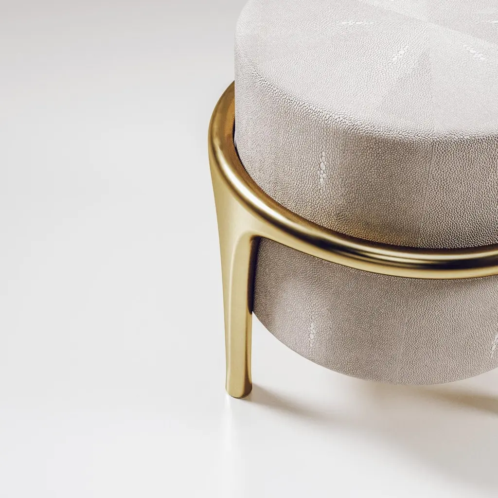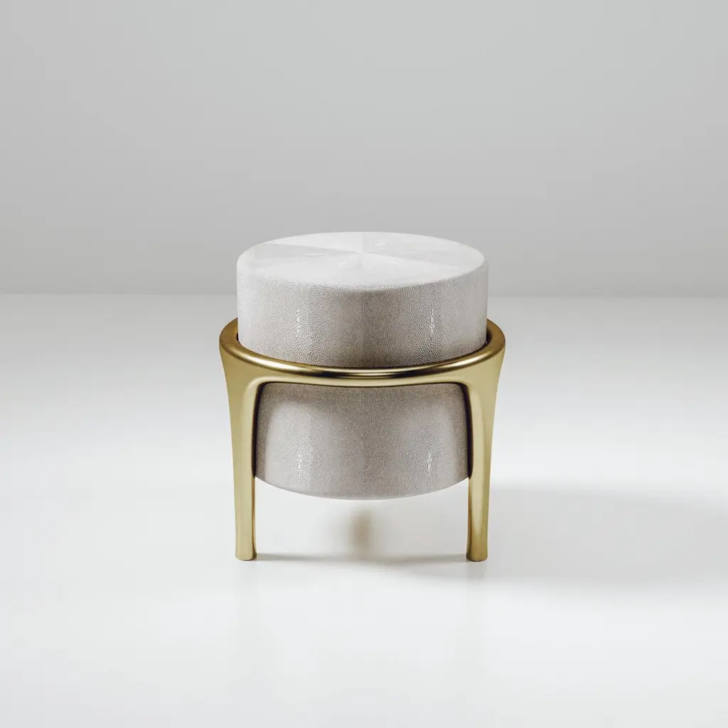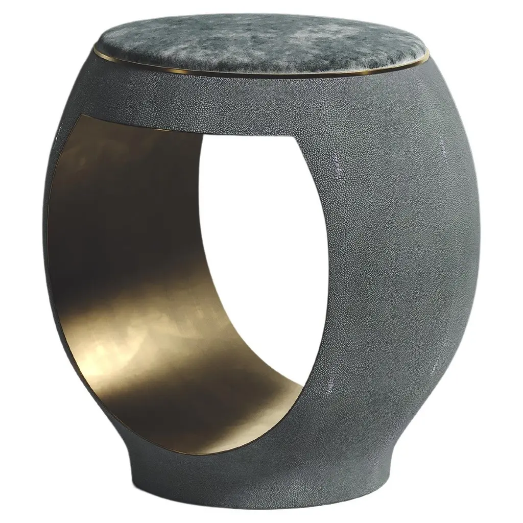 Shagreen Stool With Bronze-Patina Brass Details By R&y Augousti