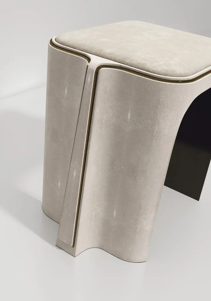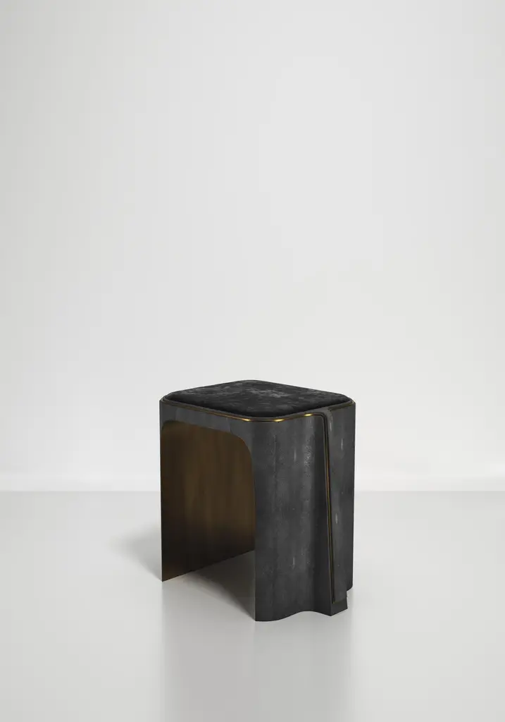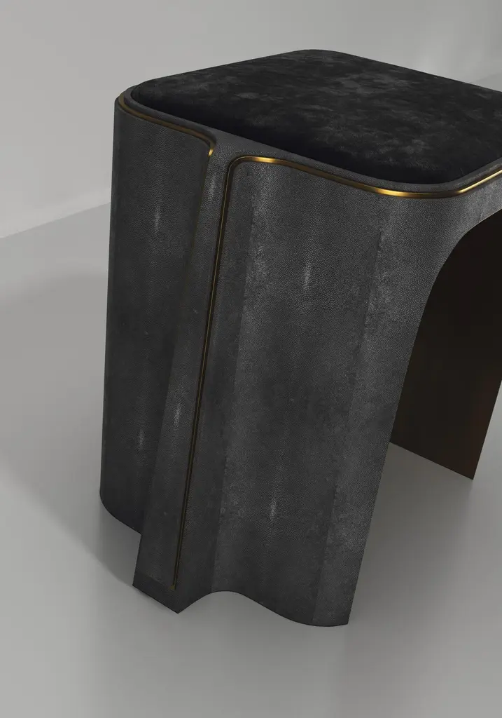 Shagreen Stool With Bronze Patina Brass Details By R&y Augousti
