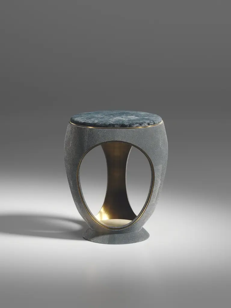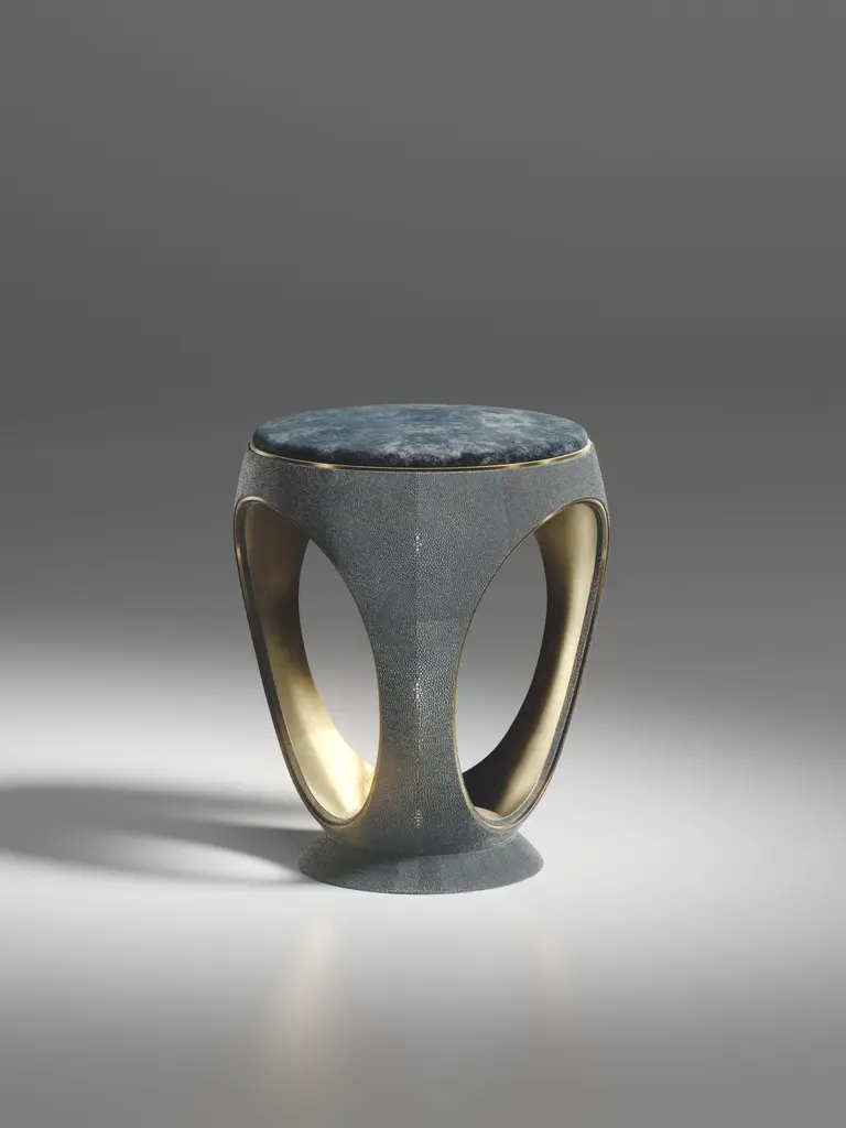 Shagreen Stool With Velvet Upholstery And Bronze-Patina Brass By R&y Augousti