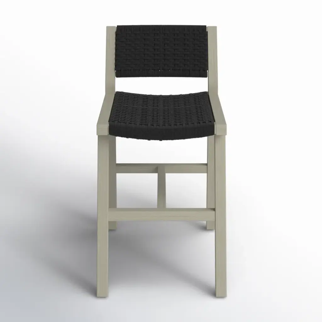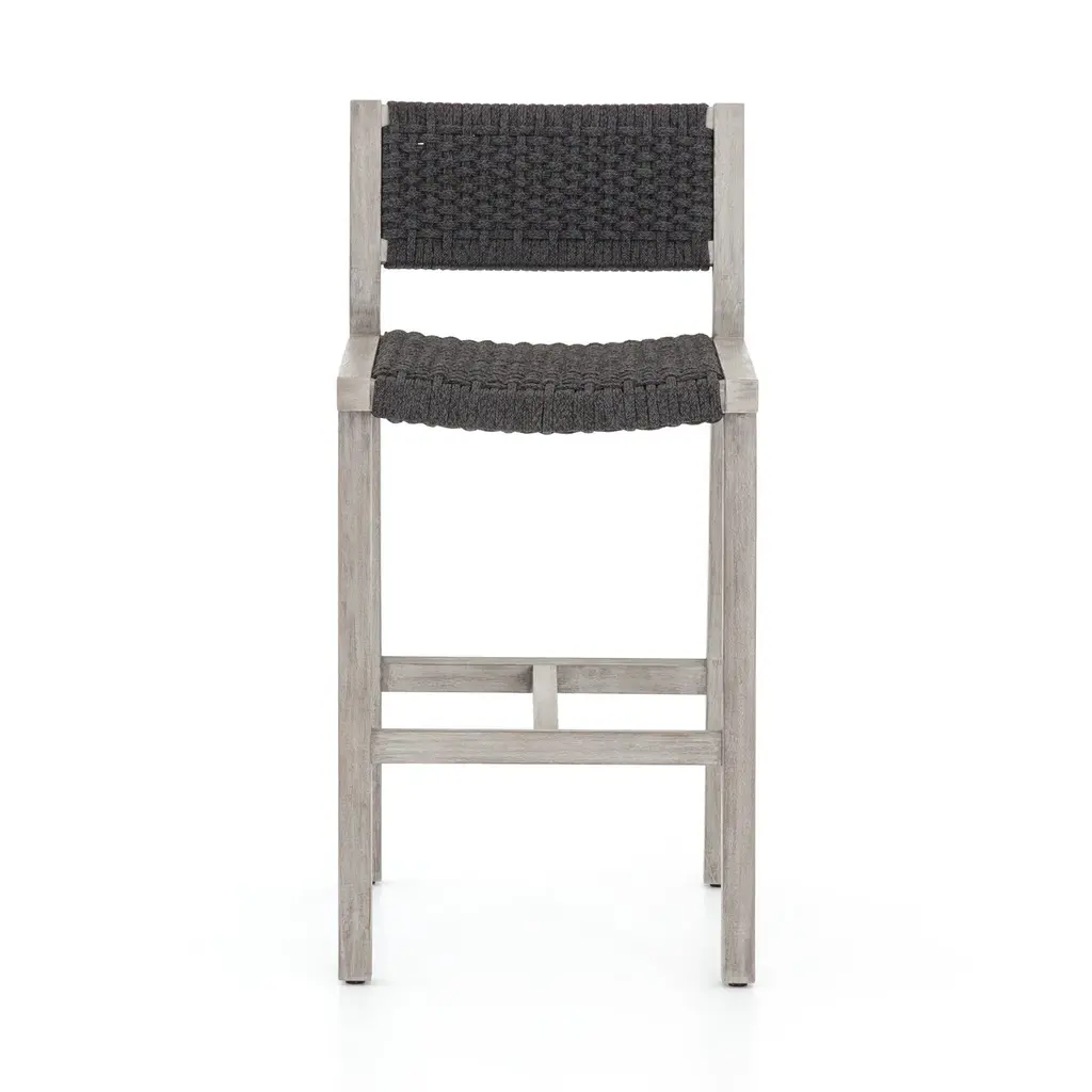 Hand-woven seating and a minimal teak silhouette create a charming, textural look in our Shaw outdoor counter-height stool. Cover or store indoors during inclement weather or when not in use.