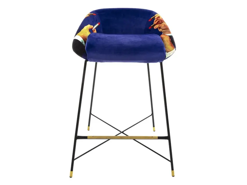 Shit is an high stool in fabric.The high stool is the last addition to the upholstered collection designed by TOILETPAPER. Fierce with its bold graphic, it’s the perfect model to add that touch of cool lounge bar to home.Material: Polyester, wood, polyurethane, metalWeight: 7.8 kg