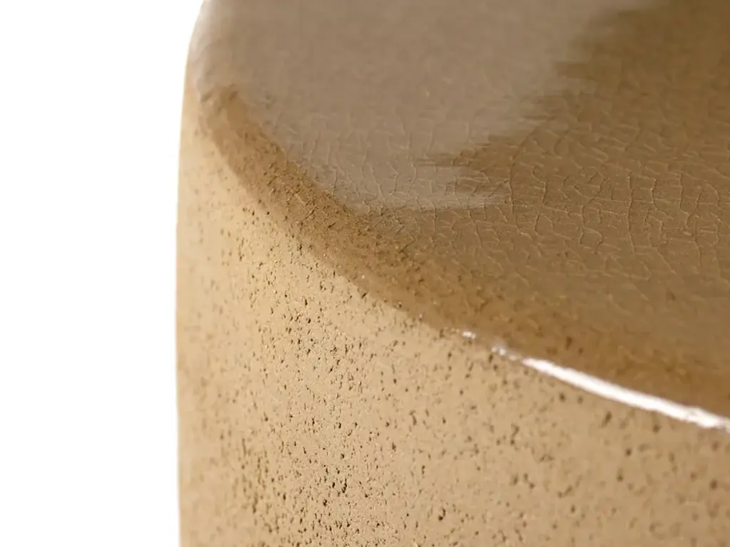 Side table Pawn is a round low table and stool made of glazed stoneware.‎ The new PAWN side tables were brought to an ideal height to also serve as a stool.‎ Ideal when suddenly many visitors come over.‎ Marie Michielssen's designs were given a glaze layer on the top.‎ A beautiful contrasting detail with the rough stone surface, but also a functional detail.‎ Those who want to use the table as a stool do not hang on the rough surface with the clothes.‎The collection of side tables by Marie Michielssen for Serax reveals an idiosyncratic, eclectic ensemble of geometrical figures, materials and colours that unmistakably bear her signature.‎ Cylinders and cuboids that are not only beautiful but are also very handy because of their double function as both a side table and a stool.‎ Mix and match different tables or let a single item speak for itself; the side tables of Marie Michielssen for Serax always ‘sit’ comfortably with you.‎