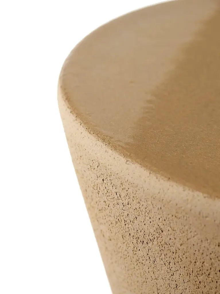 Side table Pawn is a round low table and stool made of glazed stoneware. The new PAWN side tables were brought to an ideal height to also serve as a stool. Ideal when suddenly many visitors come over. Marie Michielssen's designs were given a glaze layer on the top. A beautiful contrasting detail with the rough stone surface, but also a functional detail. Those who want to use the table as a stool do not hang on the rough surface with the clothes.The collection of side tables by Marie Michielssen for Serax reveals an idiosyncratic, eclectic ensemble of geometrical figures, materials and colours that unmistakably bear her signature. Cylinders and cuboids that are not only beautiful but are also very handy because of their double function as both a side table and a stool. Mix and match different tables or let a single item speak for itself; the side tables of Marie Michielssen for Serax always ‘sit’ comfortably with you.