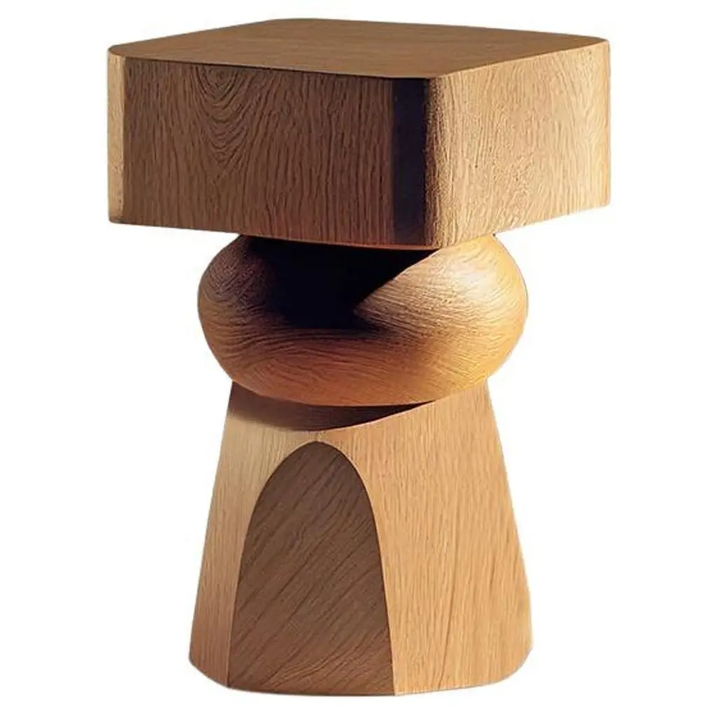 Side Table, Stool Or Nightstand In Solid Wood Finish, Auxiliary Table Socle 37
