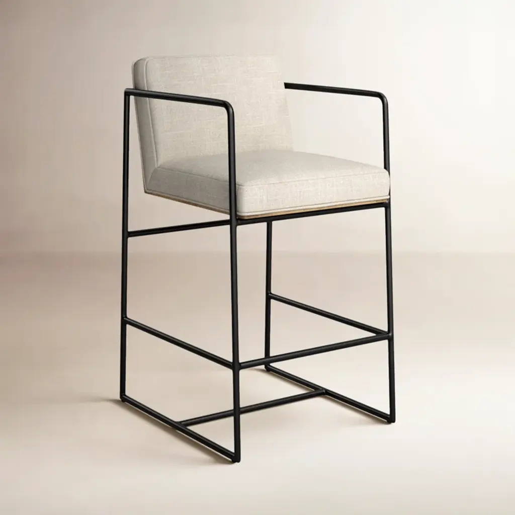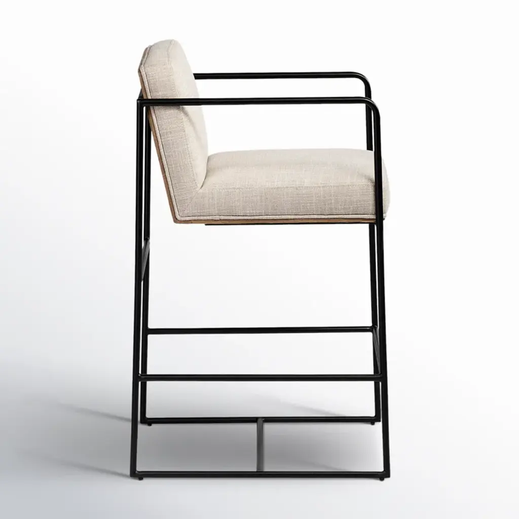 Elevate your seating game with this chic iron stool, featuring a cozy upholstered seat and solid wood backrest. Its rectangular base and matte finish provide a modern touch, while the eucalyptus wood and polyester blend upholstery ensure a comfortable spot to relax. The stool's design includes a footrest and protective rubber pads to keep your floors safe. Ideal for residential use, this stool is a versatile addition to your kitchen or bar area. Just remember to spot clean with a dry cloth and avoid direct sunlight to keep it looking fresh.