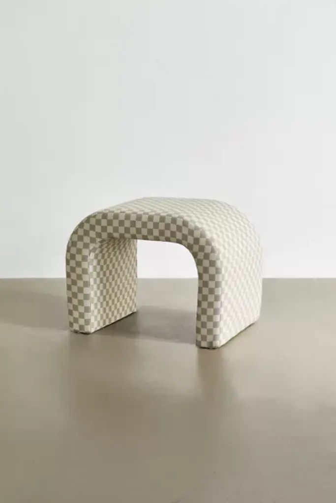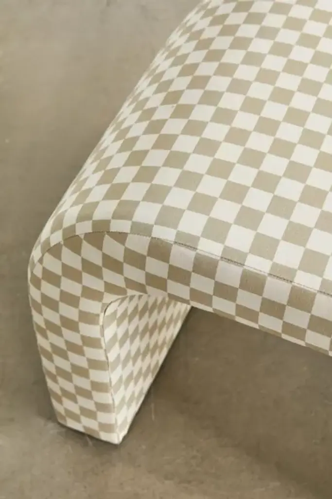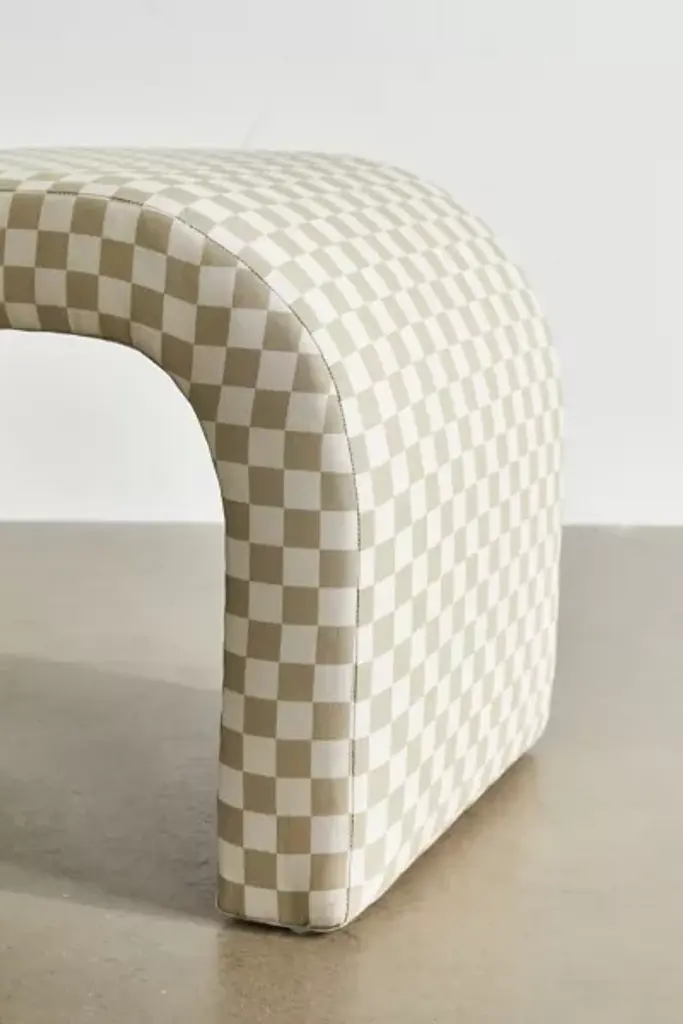 Curved stool upholstered in an allover checkerboard print. This custom furniture piece will be made to order just for you. **Features** \- Statement upholstered stool \- Upholstered in allover checkered printed fabric \- Made to order just for you **Content + Care** \- Cotton, wood \- Spot clean \- Made in the USA **Size** \- Overall dimensions: 28"l x 19"w x 20"h \- Leg height: 16" \- Clearance: 16" \- Seat height: 20" \- Weight: 28lbs \- Shipping package dimensions: 19"l x 22"w x 27"h \- Shipping package weight: 30lbs