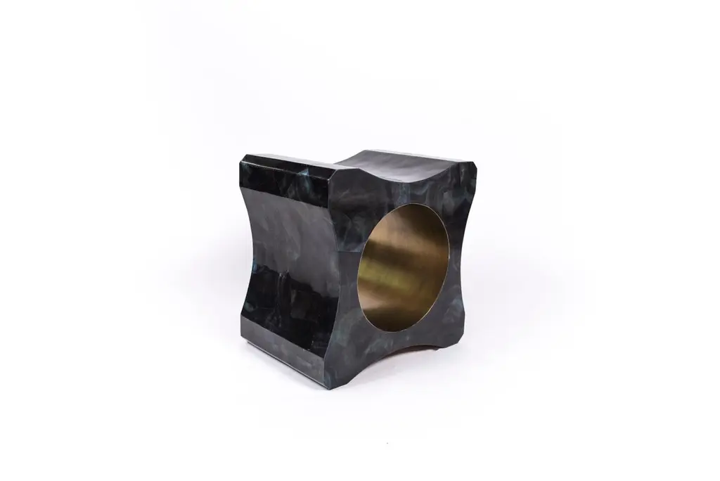 Signet Stool In Black Pen Shell And Bronze-Patina Brass By Kifu Paris