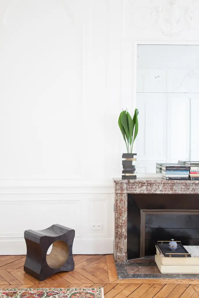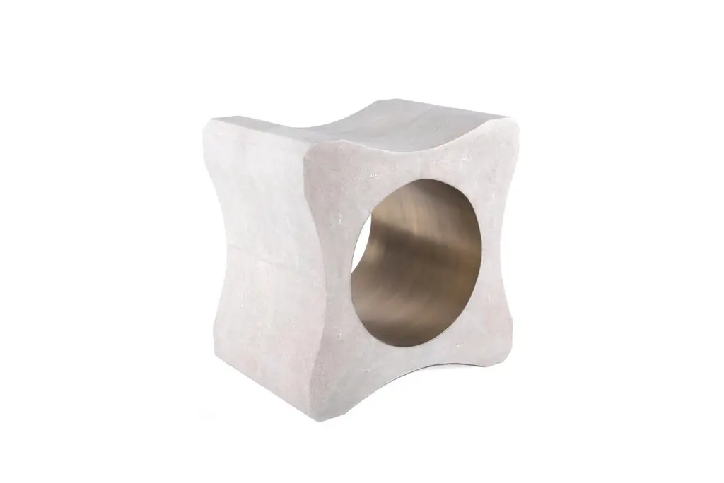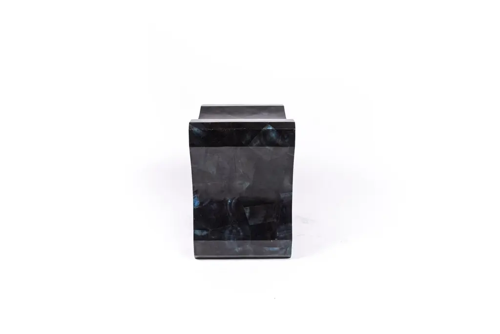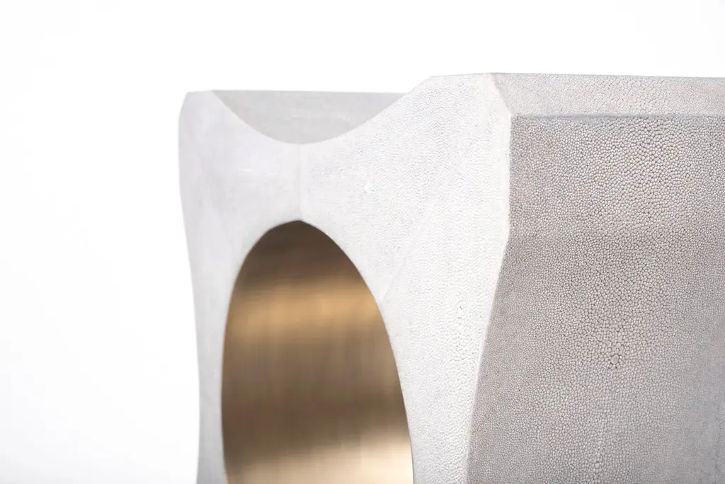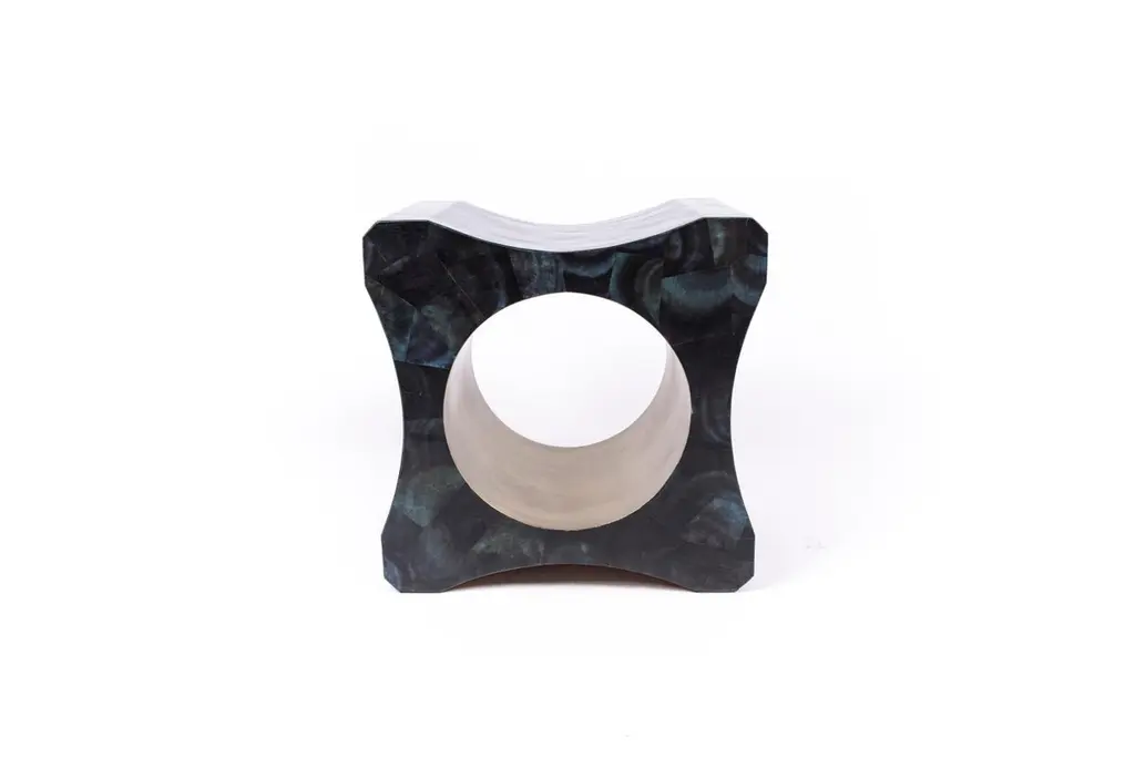 The Paris based label has distinguished themselves since their launch, with their iconic use of shagreen mixed with brass and other exotic materials. All furniture is handcrafted by skilled artisans, ultimately making each piece unique, designed in Paris and produced in the Philippines.The Signet stool inlaid in black pen shell and bronze patina brass, is an elegant seating piece for any space. Available in other finishes, see images at end of slide. This piece is designed by Kifu Augousti, the daughter of Ria and Yiouri Augousti.The dimensions of this piece are 50 x 35 x 50 cm / 19.5 x 13.75 x 19.5''All Kifu Paris pieces are handmade by artisans, ultimately making each piece unique. Custom color or sizing available on request.Wipe clean with soft dry cloth.Although inspired by her parents, her collection of Home Accessories and Furniture is a distinct identity of its own. Kifu uses handmade techniques of elaborate inlay patterns of shagreen, shells, semi-precious stones, materials she experienced as a child growing up in her parent’s studio, but interpreted in a younger quirkier way reflecting her youth. From her "jewelry inspired knobs" on decorative boxes, gold bar boxes and an extravagant inlay pattern mix of shagreen and shell inspired by galactic constellations, as seen on her enormous round mirror, is refreshing to see. Kifu embodies whimsical elements throughout her collection and is not afraid to be daring and unexpected in her approach to design. All shagreen-covered items should be kept out of direct sunlight, color variants may occur on the stingray and other exotic finishes, but this showcases the Parisian label's commitment to creating authentic luxurious products using natural components.