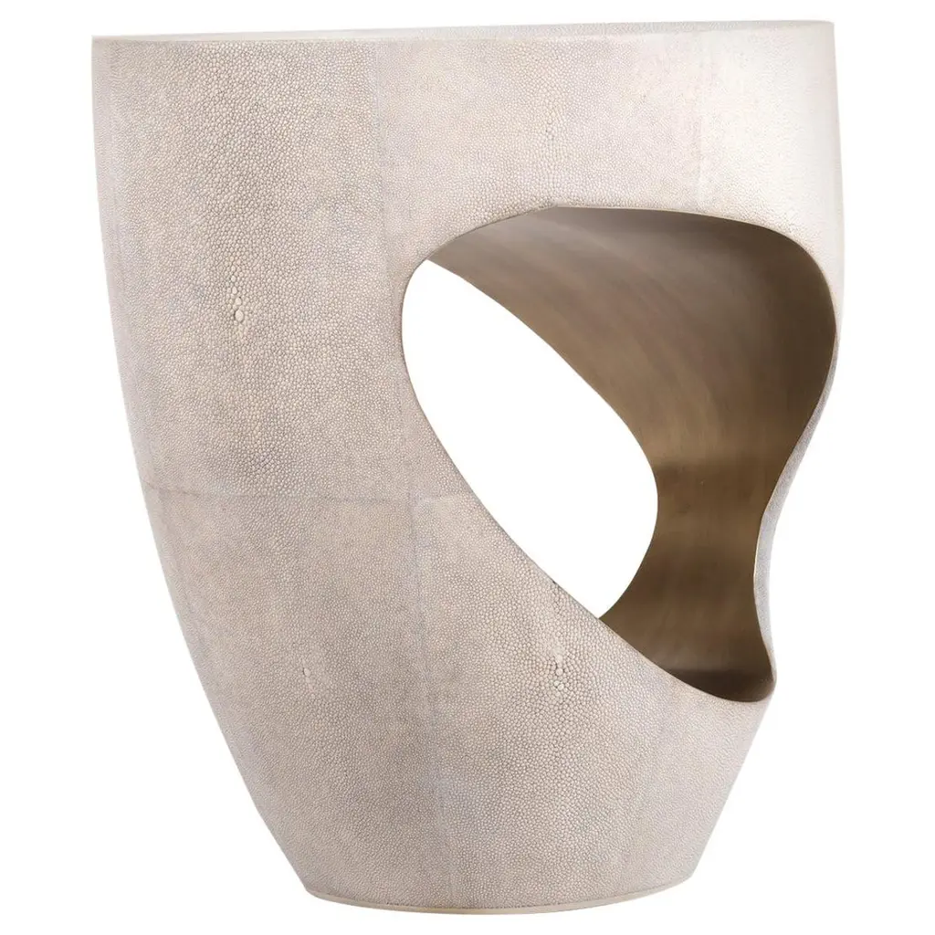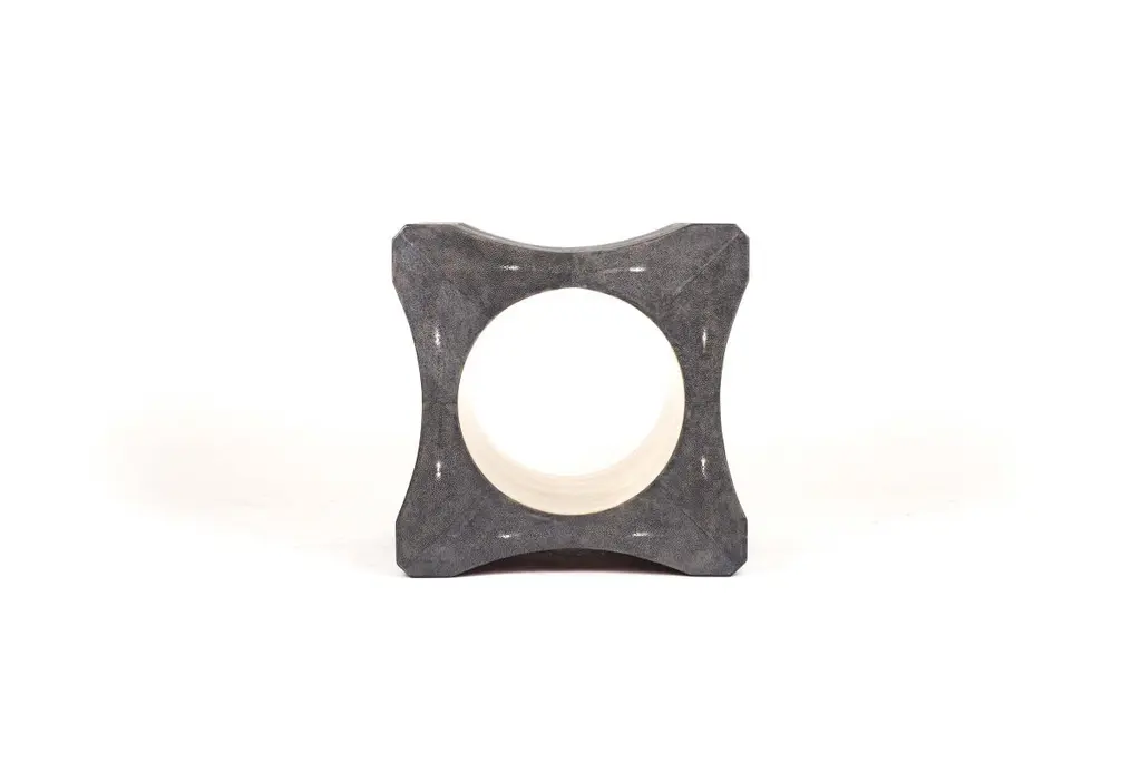 The Paris based label has distinguished themselves since their launch, with their iconic use of shagreen mixed with brass and other exotic materials. All furniture is handcrafted by skilled artisans, ultimately making each piece unique, designed in Paris and produced in the Philippines.The Signet stool inlaid in coal black shagreen and bronze patina brass, is an elegant seating piece for any space. Available in other finishes, see image at end of slide. This piece is designed by Kifu Augousti, the daughter of Ria and Yiouri Augousti.All shagreen pieces are hand-dyed by artisans, the designer calls this finish "coal black" shagreen.The dimensions of this piece are 50 x 35 x 50 cm / 19.5 x 13.75 x 19.5''All Kifu Paris pieces are handmade by artisans, ultimately making each piece unique. Custom color or sizing available on request.Wipe clean with soft dry cloth.Although inspired by her parents, her collection of Home Accessories and Furniture is a distinct identity of its own. Kifu uses handmade techniques of elaborate inlay patterns of shagreen, shells, semi-precious stones, materials she experienced as a child growing up in her parent’s studio, but interpreted in a younger quirkier way reflecting her youth. From her "jewelry inspired knobs" on decorative boxes, gold bar boxes and an extravagant inlay pattern mix of shagreen and shell inspired by galactic constellations, as seen on her enormous round mirror, is refreshing to see. Kifu embodies whimsical elements throughout her collection and is not afraid to be daring and unexpected in her approach to design. All shagreen-covered items should be kept out of direct sunlight, color variants may occur on the stingray and other exotic finishes, but this showcases the Parisian label's commitment to creating authentic luxurious products using natural components.