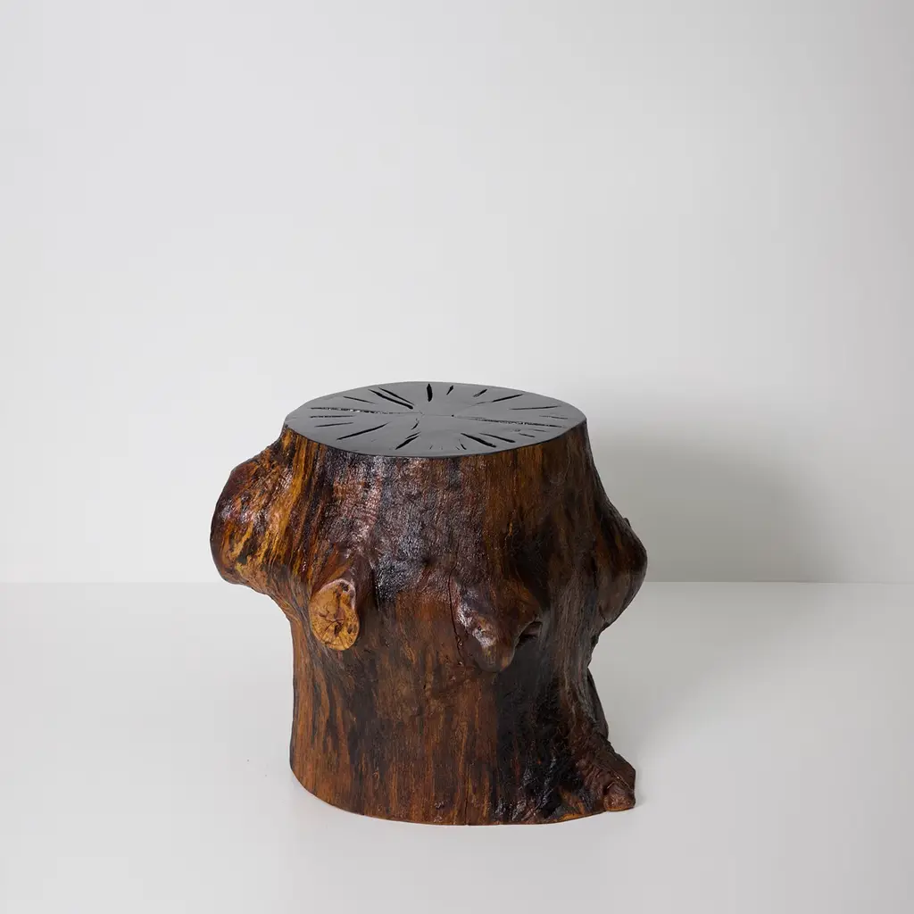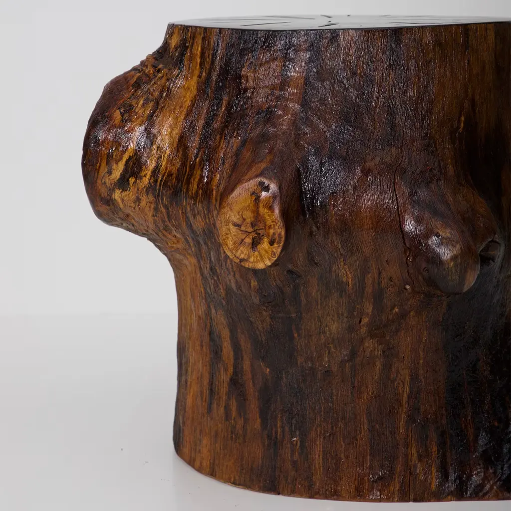 Unpredictable and unrepeatable grain stress at first glance the precious rustic quality of this singular stool. Obtained by sectioning an authentic oak trunk, its natural aesthetic gets enhanced in every detail thanks to a Florentine oil treatment that adds to a water-based enamel all over the top. Ideally purchased with twins for a casual seating composition of exquisite rustic flair.