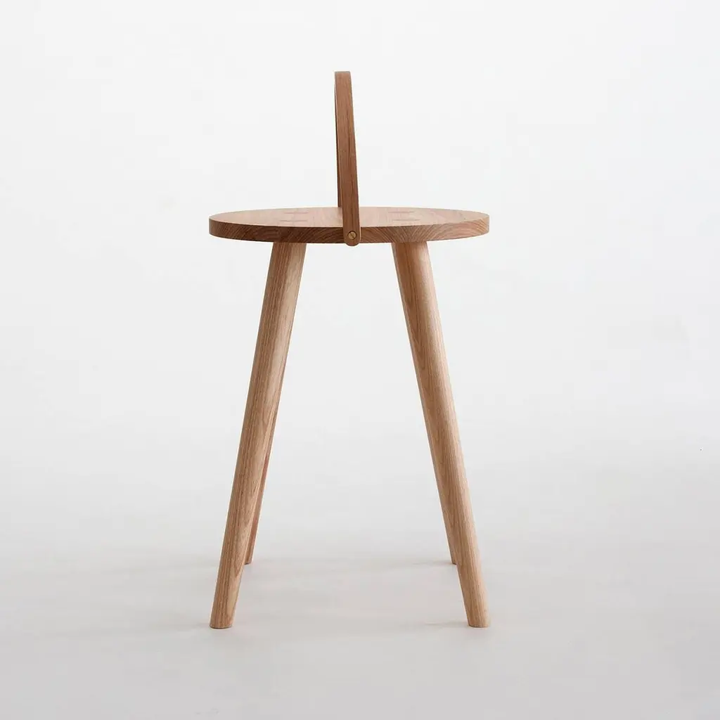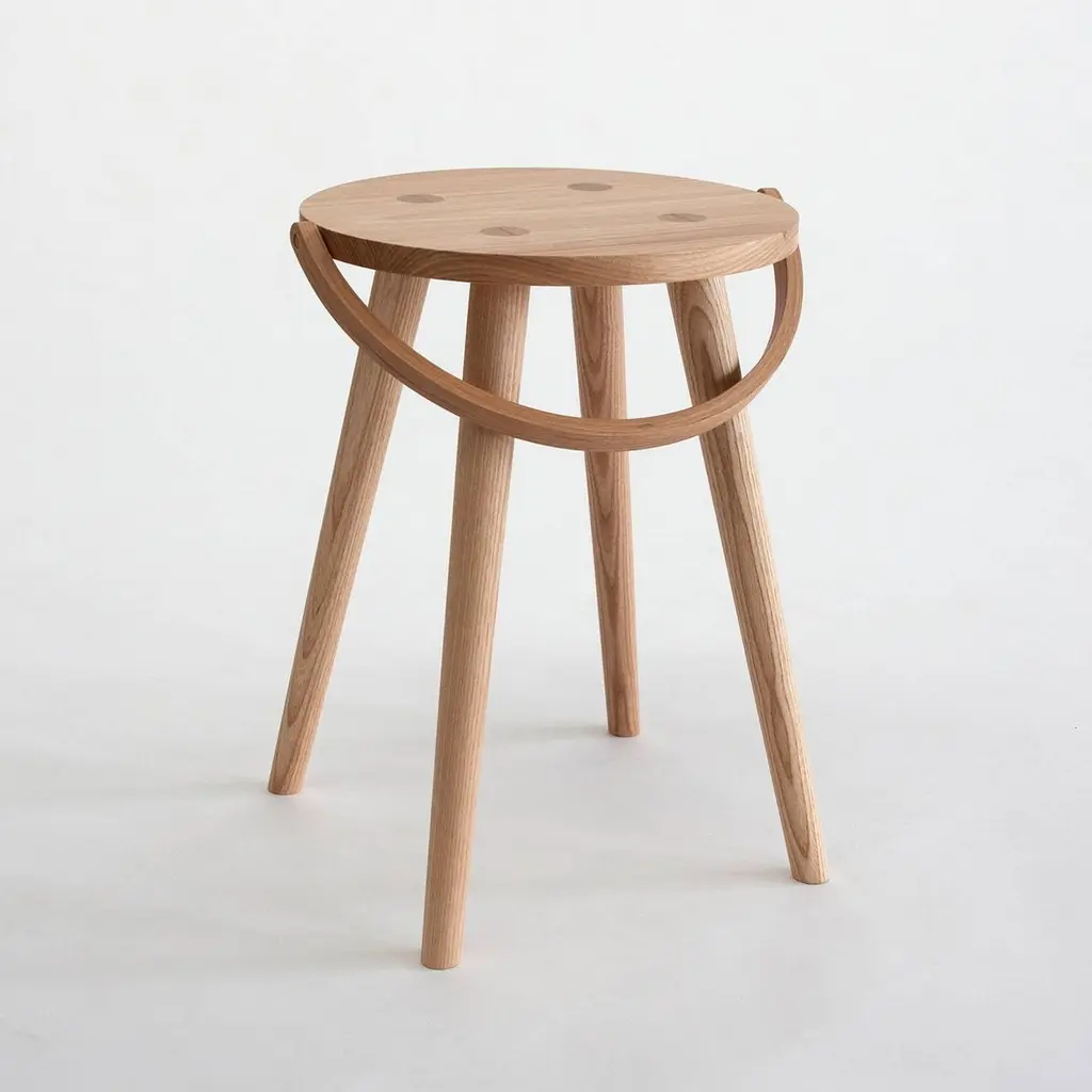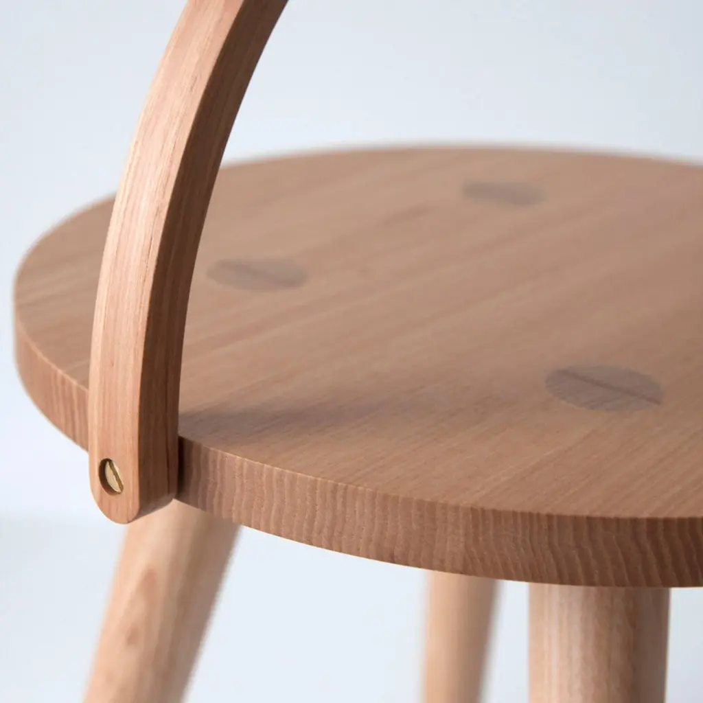 Single Bucket Stool, Seat Side Table With Bentwood Handle In Solid Ash