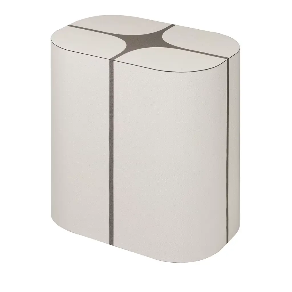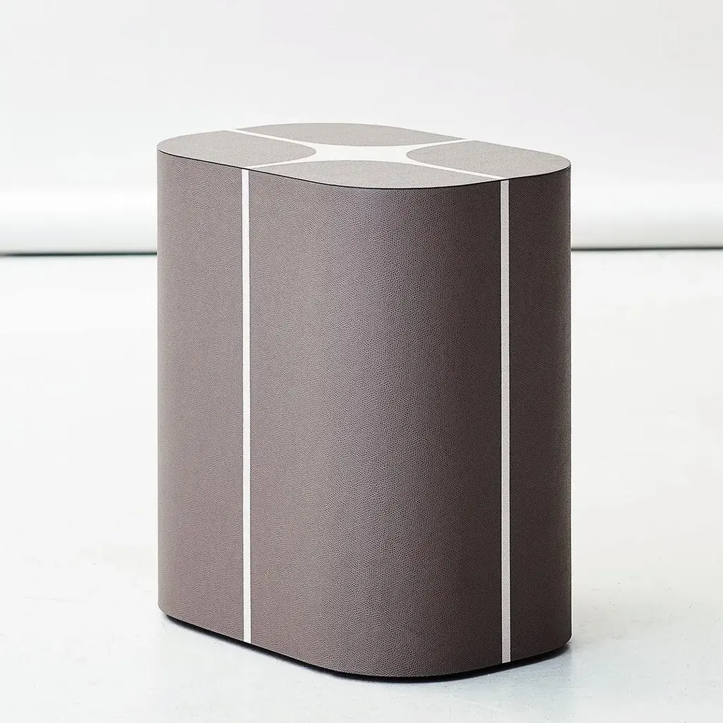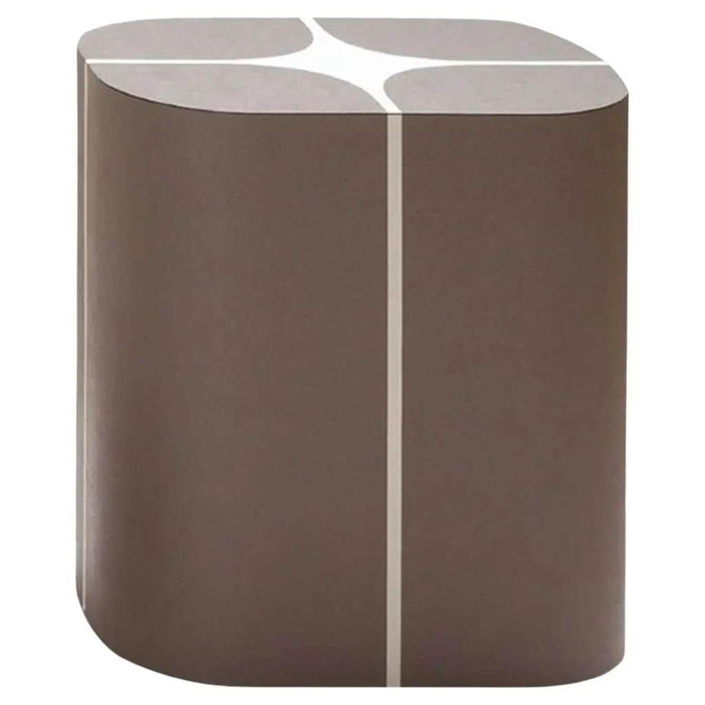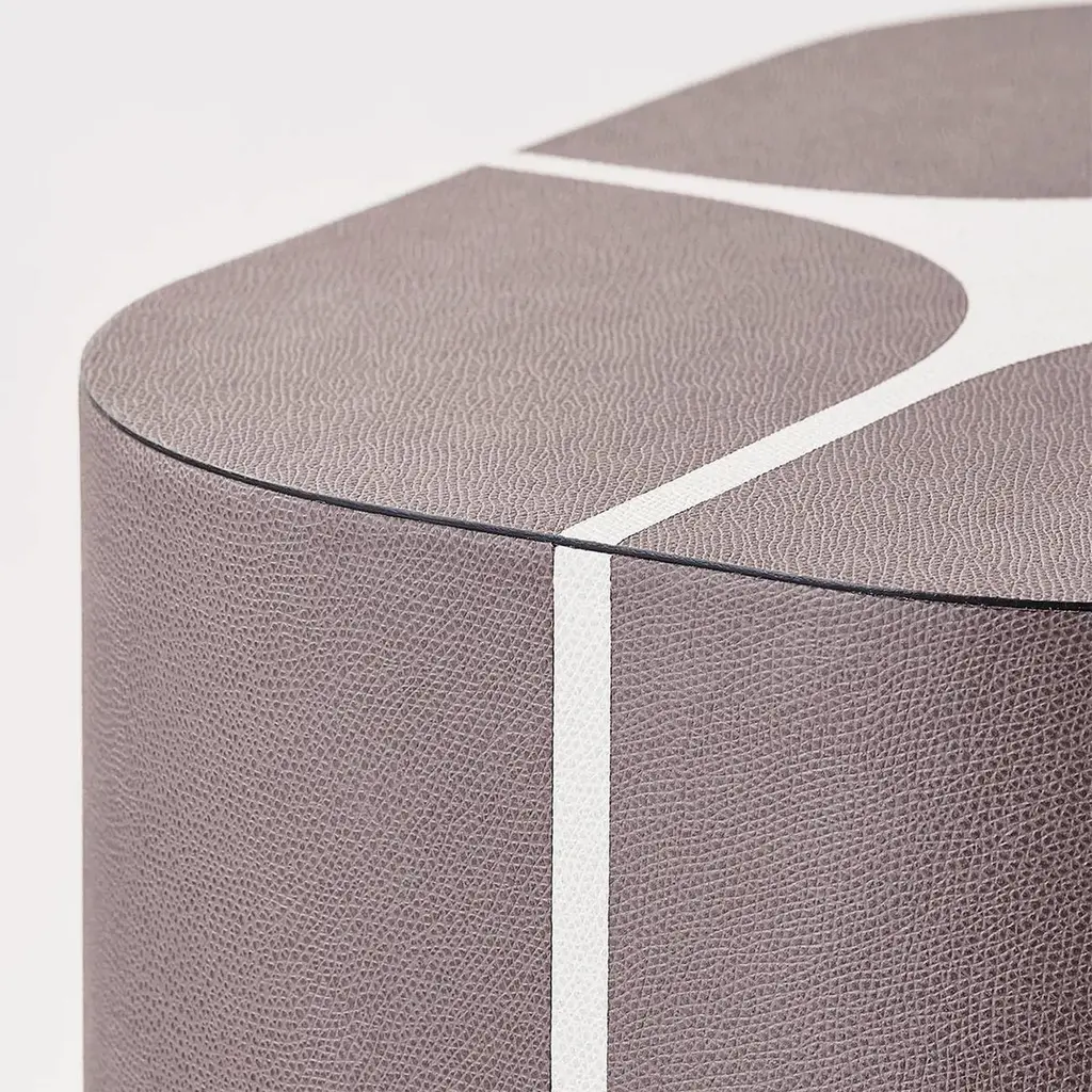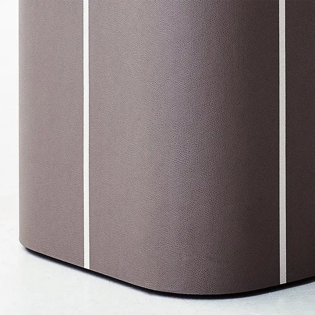 Stool Sipane brown with solid wooden structure,covered with hand-crafted calfskin leather in brown color. With trims with hand-crafted calfskin leather in white color.