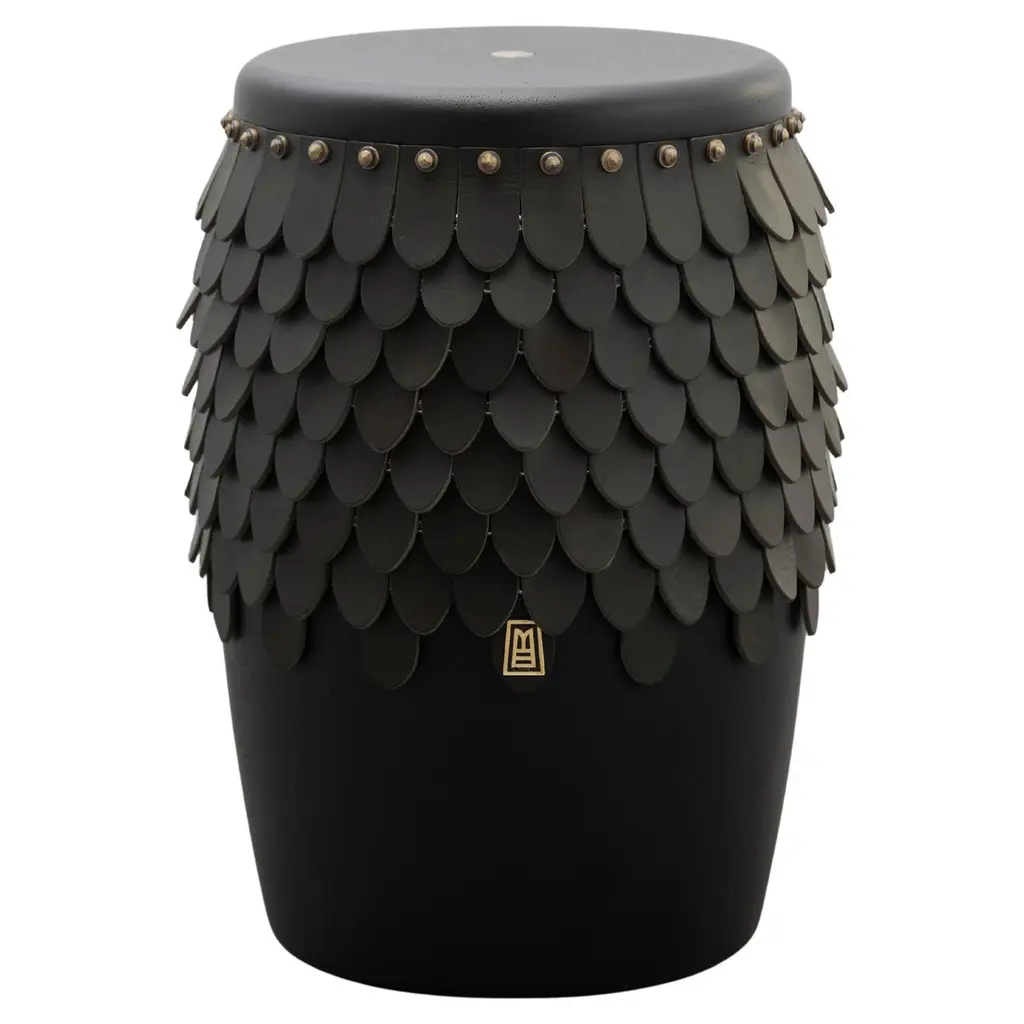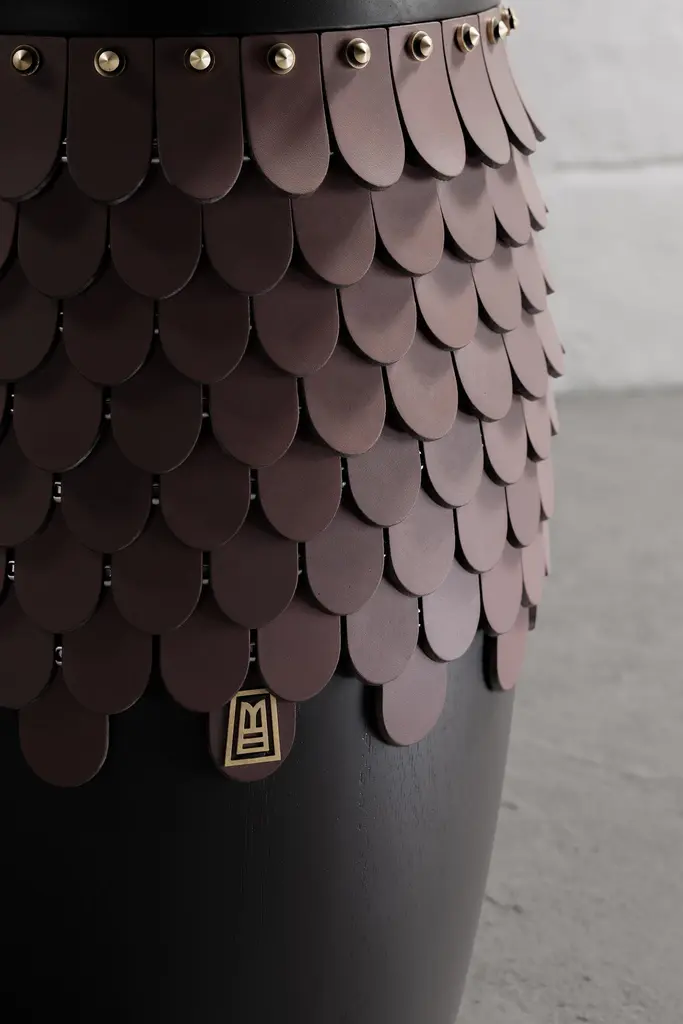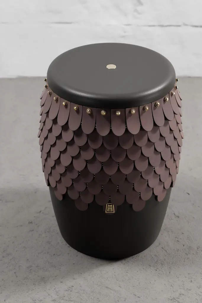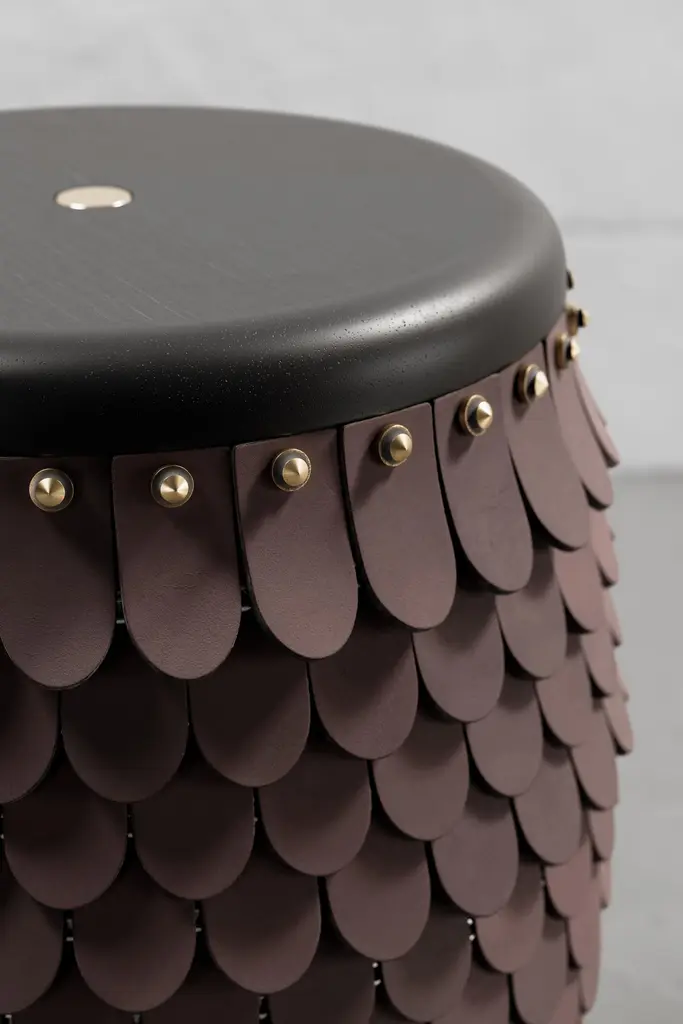 Stool crafted from solid Seike wood with Ébano finish, featuring thick leather accents, and aged bronze or stainless steel CNC-lathed hardware.Our SITIERA_01 stool and side table embodies our commitment to conscious design, reflected not only in our relationship with artisans and suppliers but also in our use of noble materials. ANDEAN primarily utilizes thick, natural Ecuadorian leather, carefully selecting the finest cowhides for our furniture and home décor. The SITIERA_01 stool and side table represent an effort to maximize material use. Through this exploration, we created a tribute to the Condor, our national symbol, by incorporating feather-like leather accents. This design maintains the visual language of Ecuadorian iconography while adding animalistic elements to the anthropomorphized sculptural piece.SITIERA is ANDEAN's second high-end residential furniture collection. Focused on seating and decorative mirrors, it is an exploration of the baroque and sacral archetypes that capture the essence of Quito's historic center art and architecture.The designs explore the relationship between contemporary organic forms with baroque-inspired details. Depicting iconography and symbols present in the sculptures and altarpieces found in Quito's colonial-era churches, monasteries, and convents. The collection is a tribute to the significant role the Baroque School of Quito played in shaping our material heritage and culture.ANDEAN studio’s practice is an exploration that highlights Ecuador's iconography and our Latin American essence. New items will be added to our ongoing collections every year, each bearing our equatorial design stamp and a distinct aesthetic.ARTISANSWashington Romero: WoodworkingEdison Simbaña: Bronze and Stainless Steel CNC Lathe