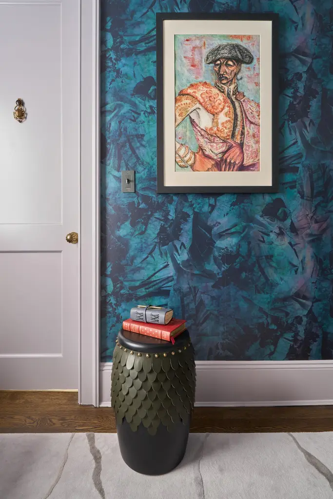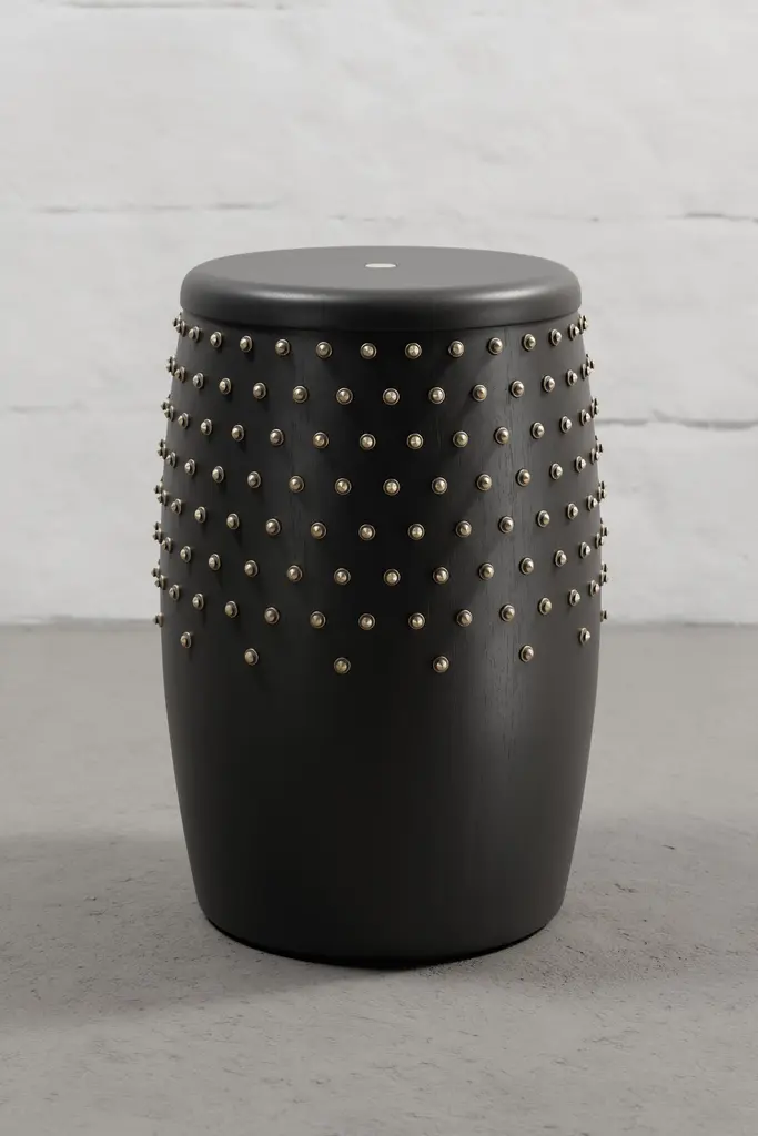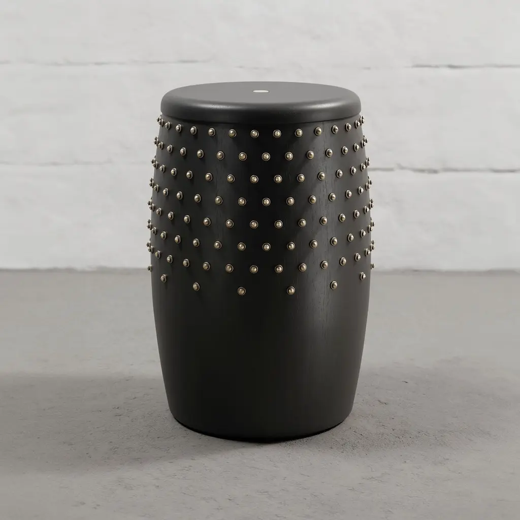 Sitiera Stool In Solid Wood With Aged Bronze Accents By Estudio Andean