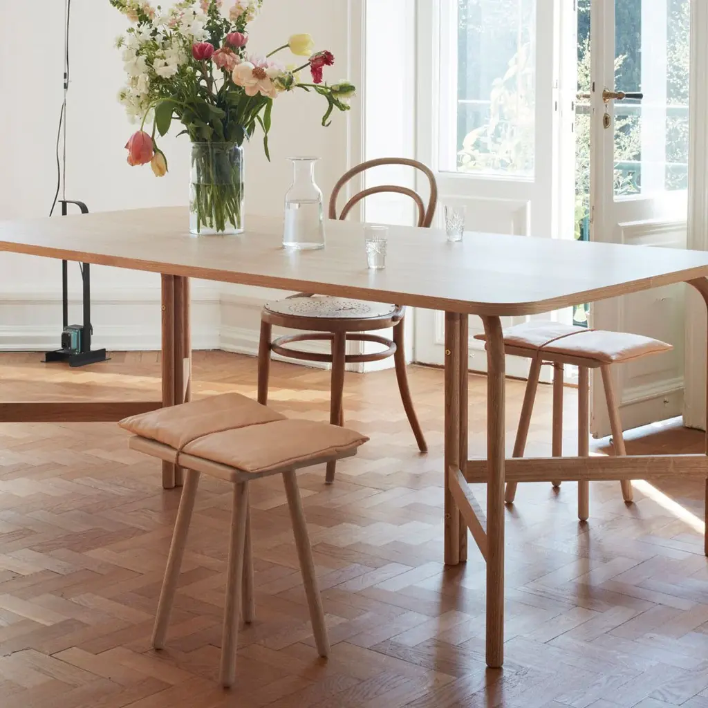 Georg Jubilee Stool is designed as a celebration of Skagerak's 40th anniversary. A beautiful mix of Nordic sensuality and Japanese minimalism. The jubilee version revives this original expression of the Georg stool in a novel way, equipped with a rare cushion made of aniline leather from a Swedish tannery called Tärnsjö. The cushion is attached with a dainty braided leather strap, while the stool itself is created in untreated oak, known for its clear, light grains and sturdiness. Skagerak is a family-owned company with historical roots in Scandinavian geography and proud furniture traditions. Our passion for wood and our focus on quality have remained intact, as we have developed into a modern design brand with an extensive selection of contemporary products in a wide range of materials, created by established designers as well as up-and-coming talents. We stand for responsible production, transparent working relations and good working conditions. We support and adhere to the United Nations' ten principles for CSR and only use legally sourced timber. Our products fall into three categories: Interior, Outdoor and Accessories, and we export to forty countries. We are proud of that achievement and attribute it to our efforts to create functional products for real life.