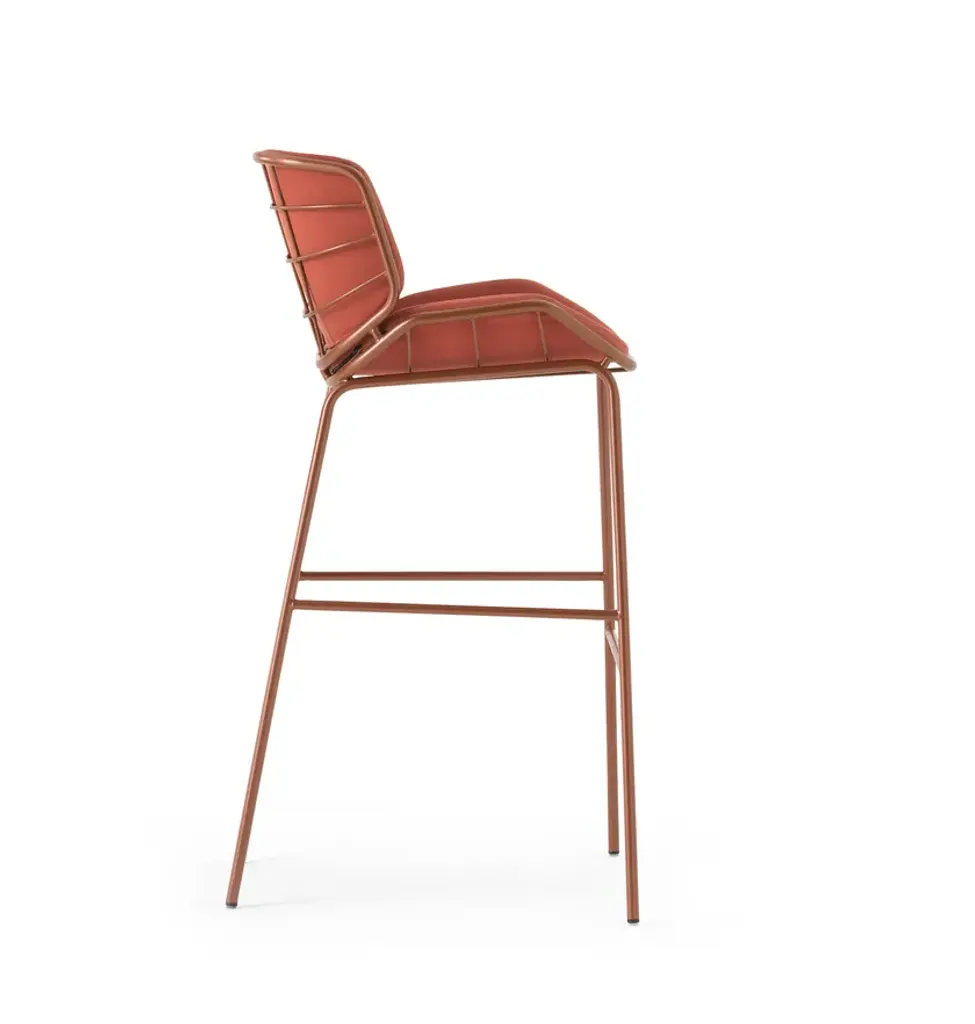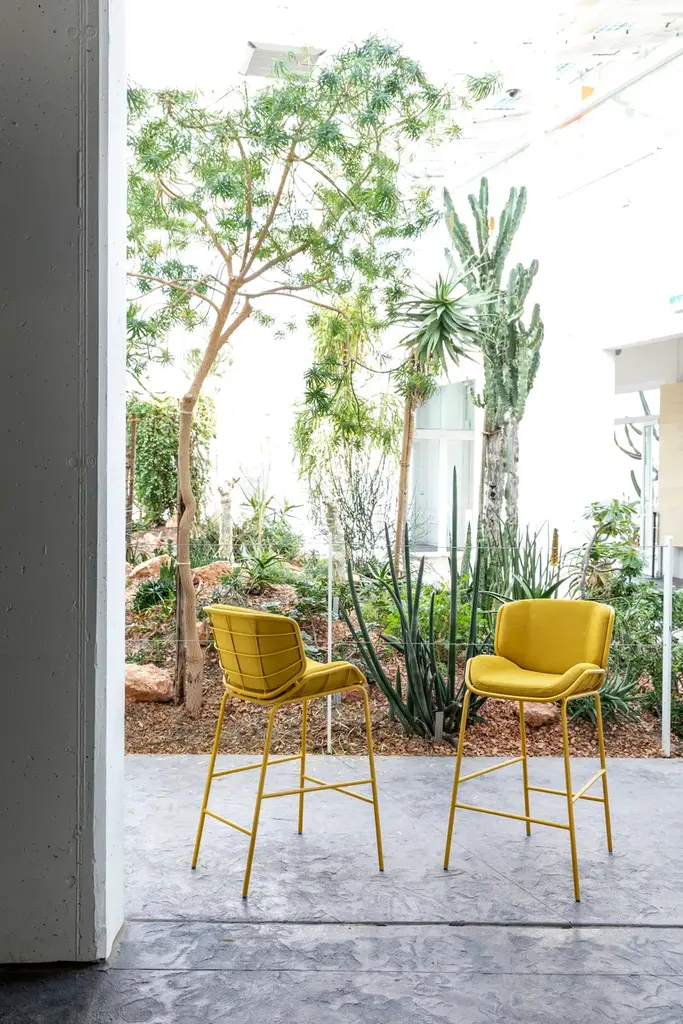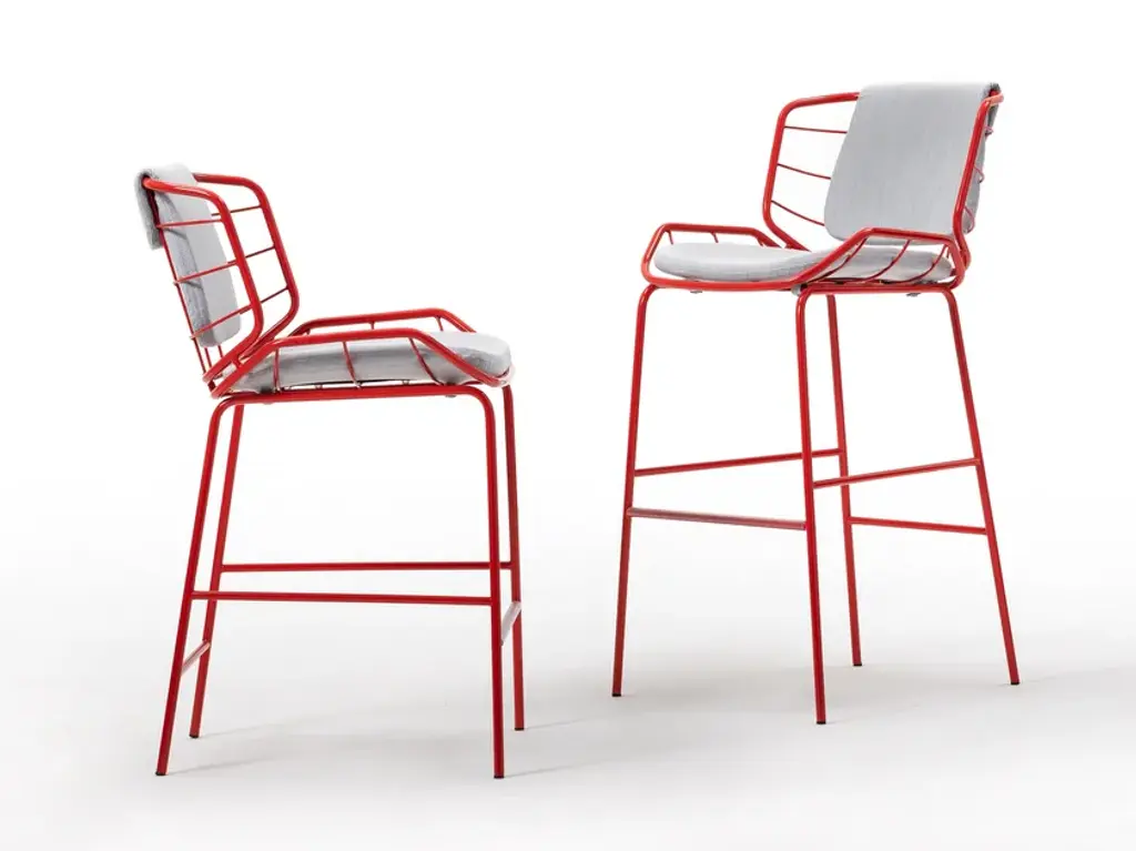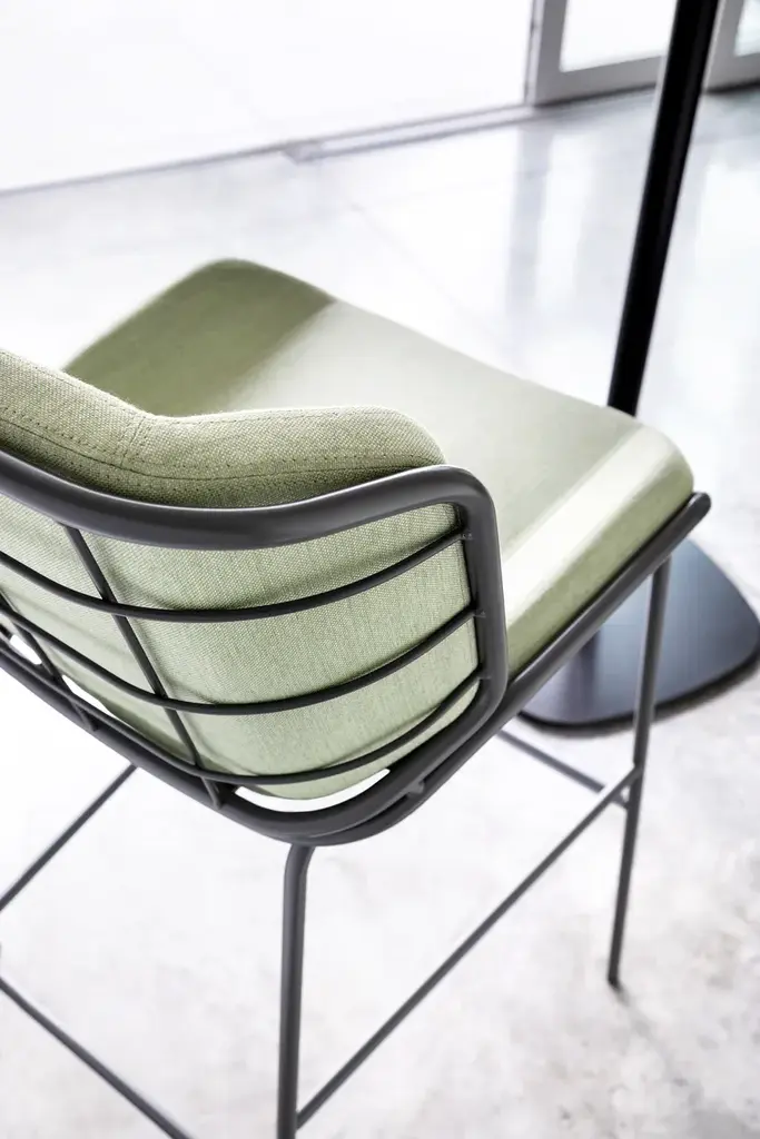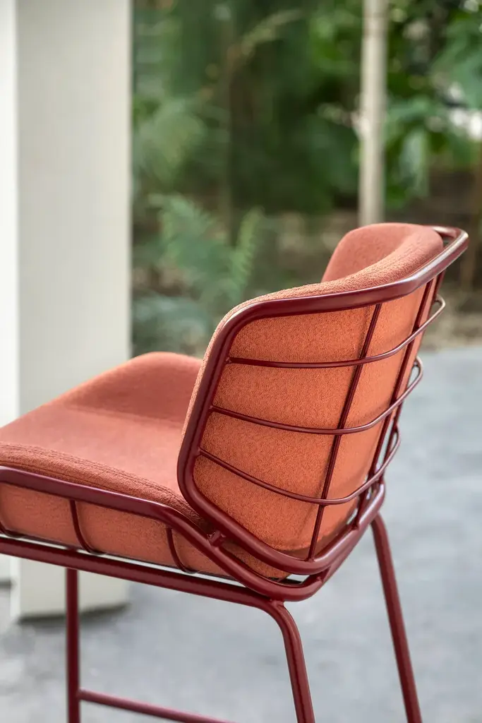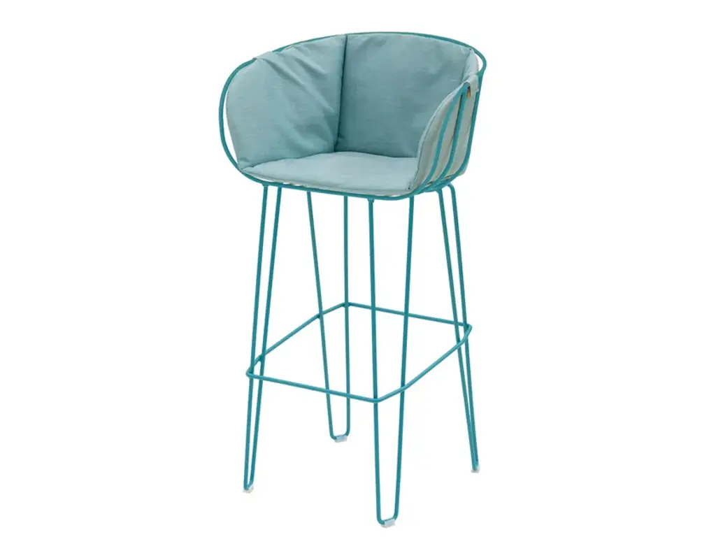 Skin is a stool with painted metal structure, indoor and outdoor version with removable cushion