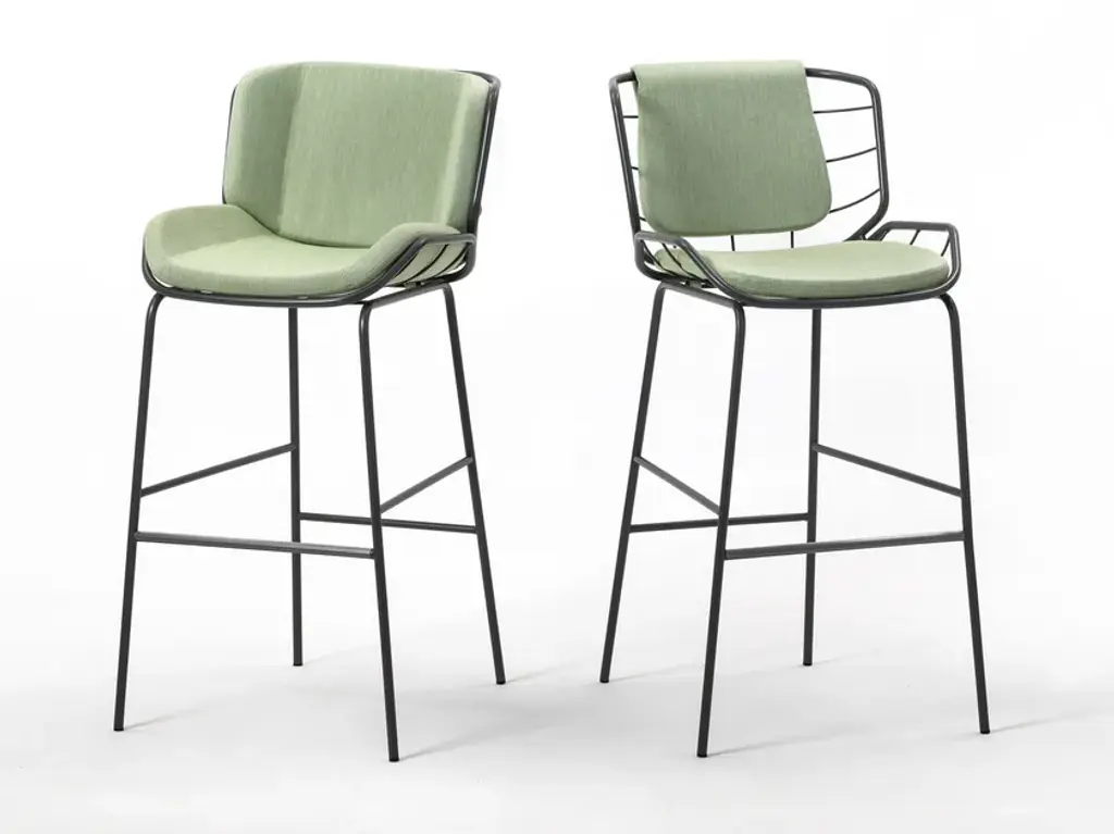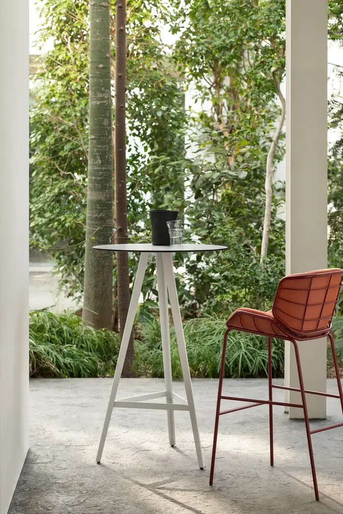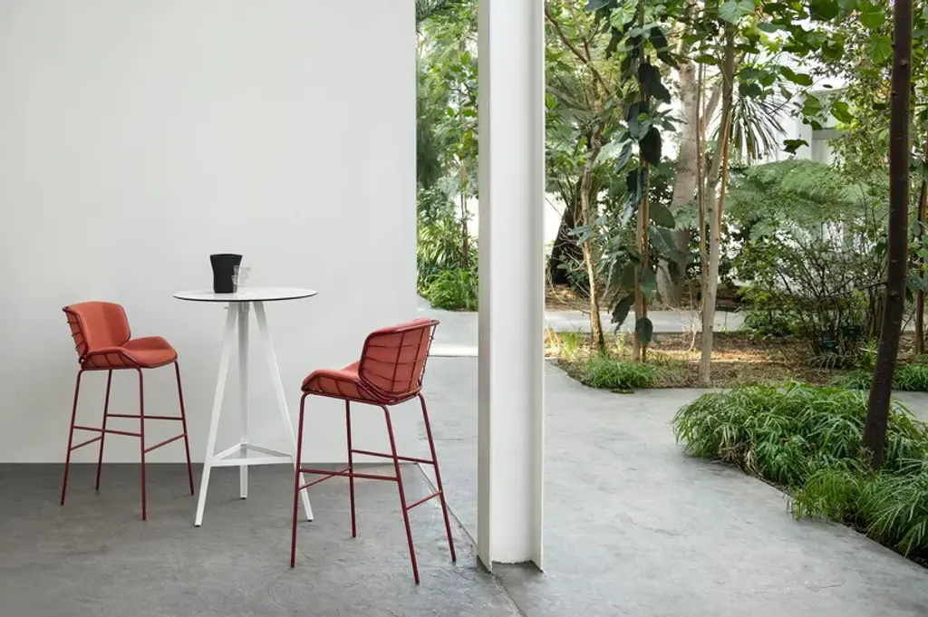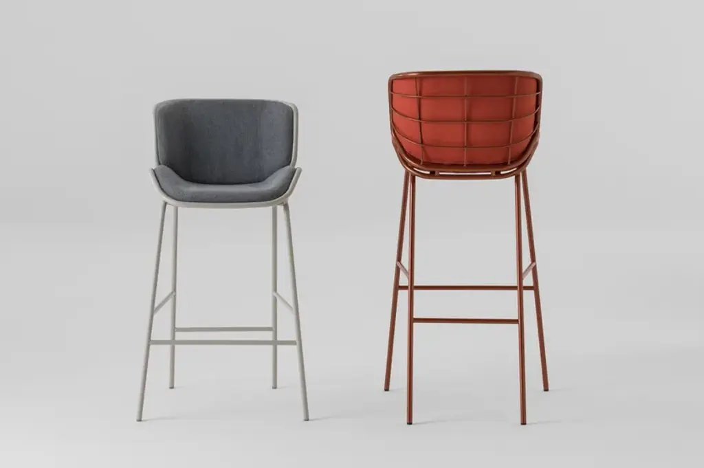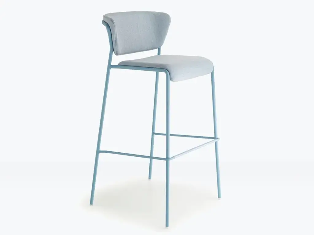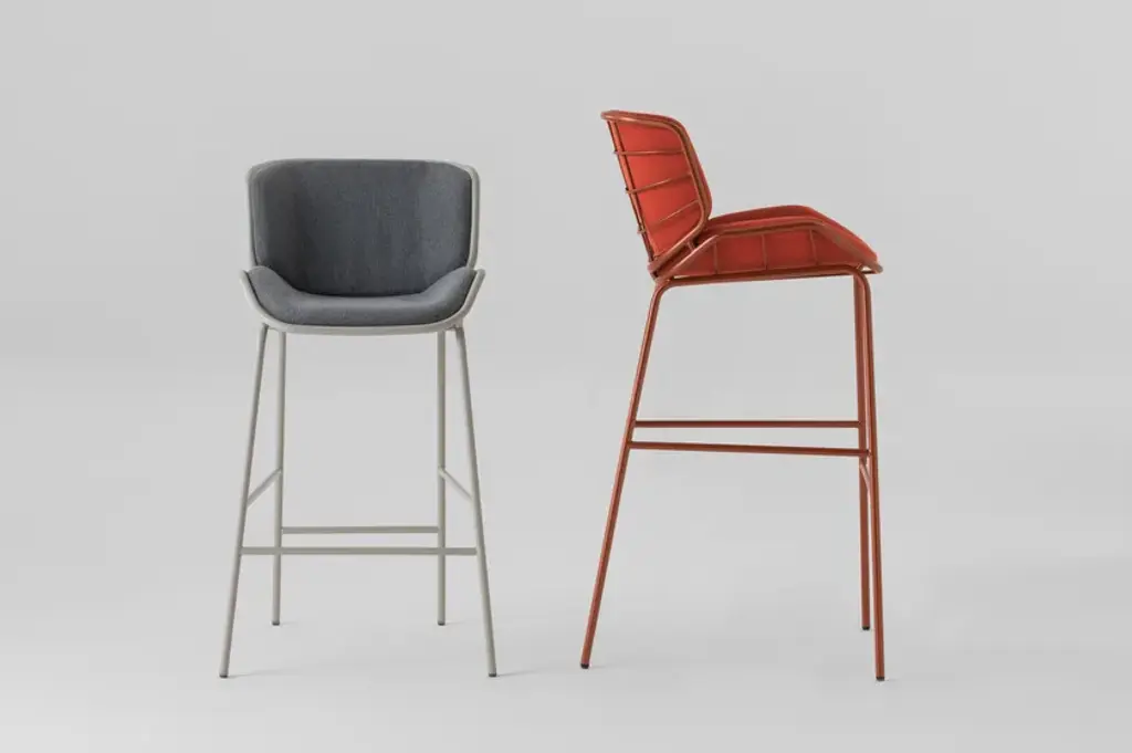 Skin is a stool with painted metal structure, indoor and outdoor version with removable cushion
