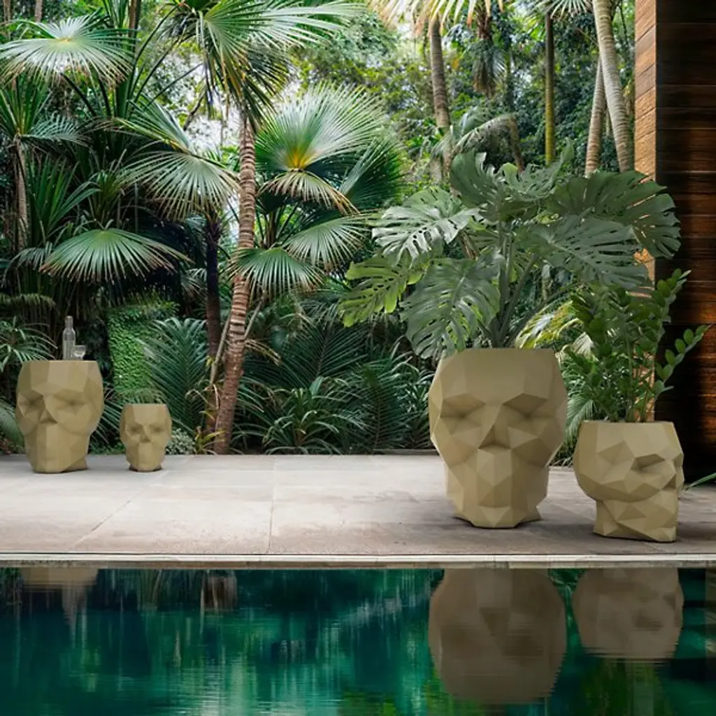 The Skull Outdoor Stool from Vondom brings unexpected whimsy to outdoor seating. Designer Teresa Sapey transforms the ancient skull motif into practical furniture through angular polyethylene construction. Unlike conventional outdoor seating, this piece serves dual purposes—offering a place to rest while sparking conversation through its unexpected form. Each geometric plane catches and reflects light differently as sun positions change throughout the day. This piece demonstrates how even practical objects can challenge expectations and delight guests with their unconventional approach.