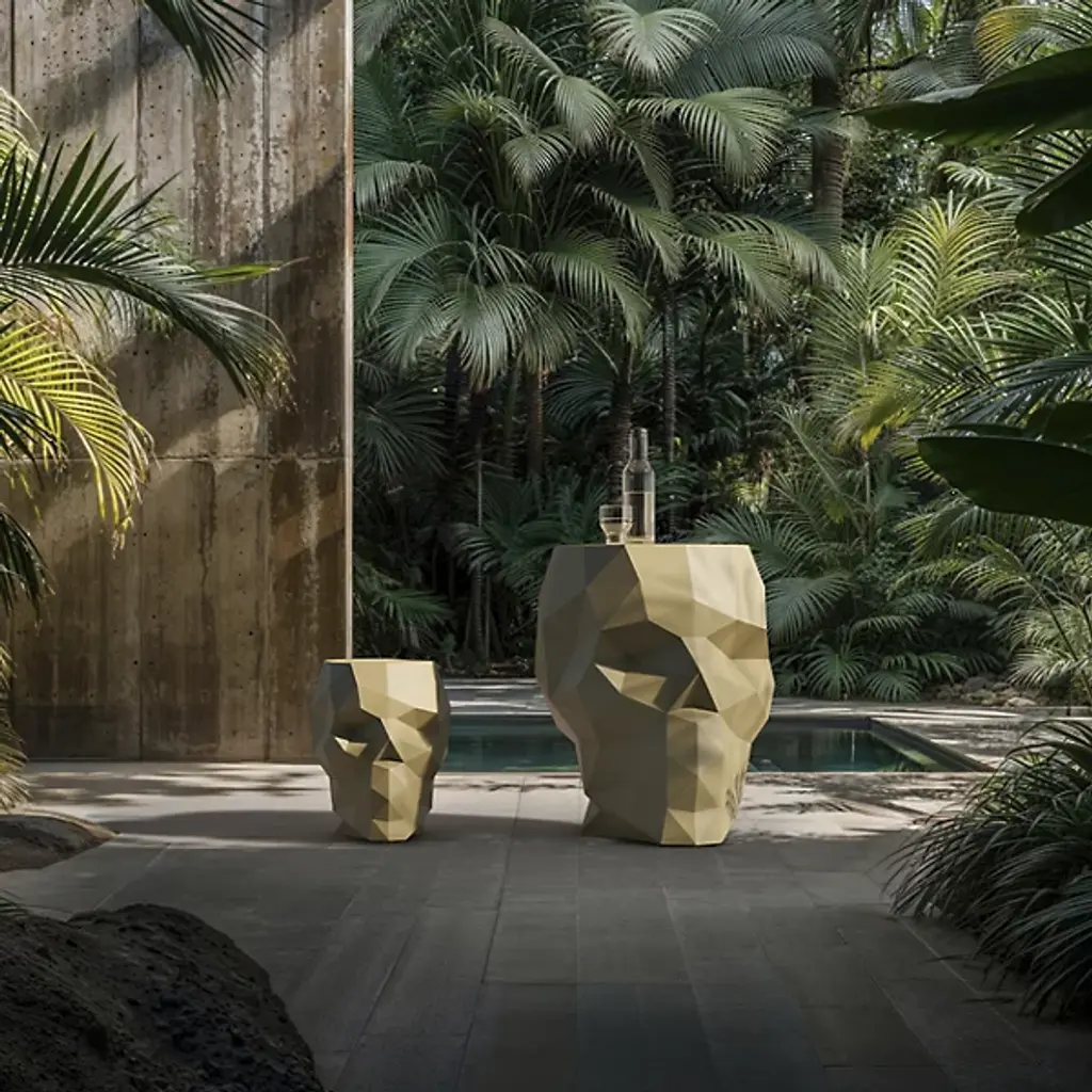 The Skull Outdoor Stool from Vondom brings unexpected whimsy to outdoor seating. Designer Teresa Sapey transforms the ancient skull motif into practical furniture through angular polyethylene construction. Unlike conventional outdoor seating, this piece serves dual purposes—offering a place to rest while sparking conversation through its unexpected form. Each geometric plane catches and reflects light differently as sun positions change throughout the day. This piece demonstrates how even practical objects can challenge expectations and delight guests with their unconventional approach.