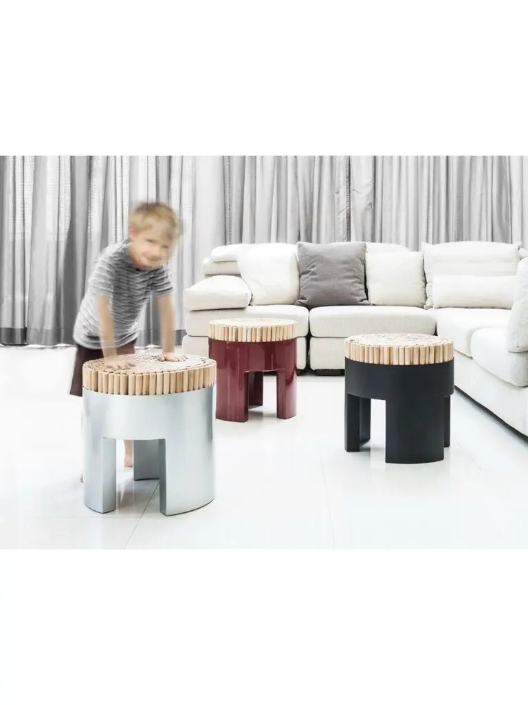 Chiquita sky blue stool by Kenneth CobonpueMaterials: Rattan, Polyurethane foam, steel. Dimensions: Diameter 45 cm x Height 46cm Chiquita is a bundle of charms with its clever design and functionality. The Chiquita stool’s vertical sections of rattan poles and high-density foam sink in and bounce back for a pleasant surprise and a sitting experience like no other.Also available in colors. Designer's BiographyKenneth Cobonpue is a multi-awarded furniture designer and manufacturer from Cebu, Philippines. His passage to design began in 1987, studying Industrial Design at the Pratt Institute in New York. While completing his studies, he apprenticed for a leather and wood workshop near Florence, Italy. He went on to study Furniture Marketing and Production at the Export-Akademie Baden-Württemberg in Reutlingen, Germany, under a private and state scholarship program, and subsequently worked in Bielefeld and Munich.Kenneth returned home to Cebu in 1996 to manage Interior Crafts of the Islands, Inc., a furniture design and manufacturing company founded by his mother Betty Cobonpue in 1972. Discovering that modern design could have a new face using natural fibers and materials, Kenneth created pieces of functional art, offering an alternative to the Western definition of modern design. Today, the Kennethcobonpue brand has become known globally for its unique designs and extensive roster of clientele, including Hollywood celebrities and members of royalty.With his masterful way of integrating nature, traditional craft and innovative technologies, designer and creative director Kenneth Cobonpue has earned international awards and recognition for his creative, organic, and expressive pieces. Working closely with some of the world’s leading designers, from household names to emerging talents, Kenneth has been pushing the envelope for design in the Philippines and sharing his vision to a global audience. Awards to his credit include five Japan Good Design Awards, the grand prize at Singapore International Design Competition, the Design for Asia Award of Hong Kong, the American Society of Interior Design Top Pick selection and the French Coup de Coeur award. Several of his designs were selected for several editions of the International Design Yearbook published in London and New York. Phaidon’s book entitled “& FORK” underscores Kenneth’s position as a leader of a new movement incorporating new technologies with crafts. In 2007, TIME magazine called him “rattan’s first virtuoso”. Kenneth was named the Designer of the Year in the first edition of Maison et Objet Asia held in March 2014 in Singapore.Kenneth reveals new work each year in the design shows from Milan to New York, and he speaks regularly about Southeast Asian design all over the world. He has also appeared in European television and in countless international magazines and newspapers around the world. Various Cobonpue designs have also appeared in full-length feature films and television, such as Oceans 13 and CSI.