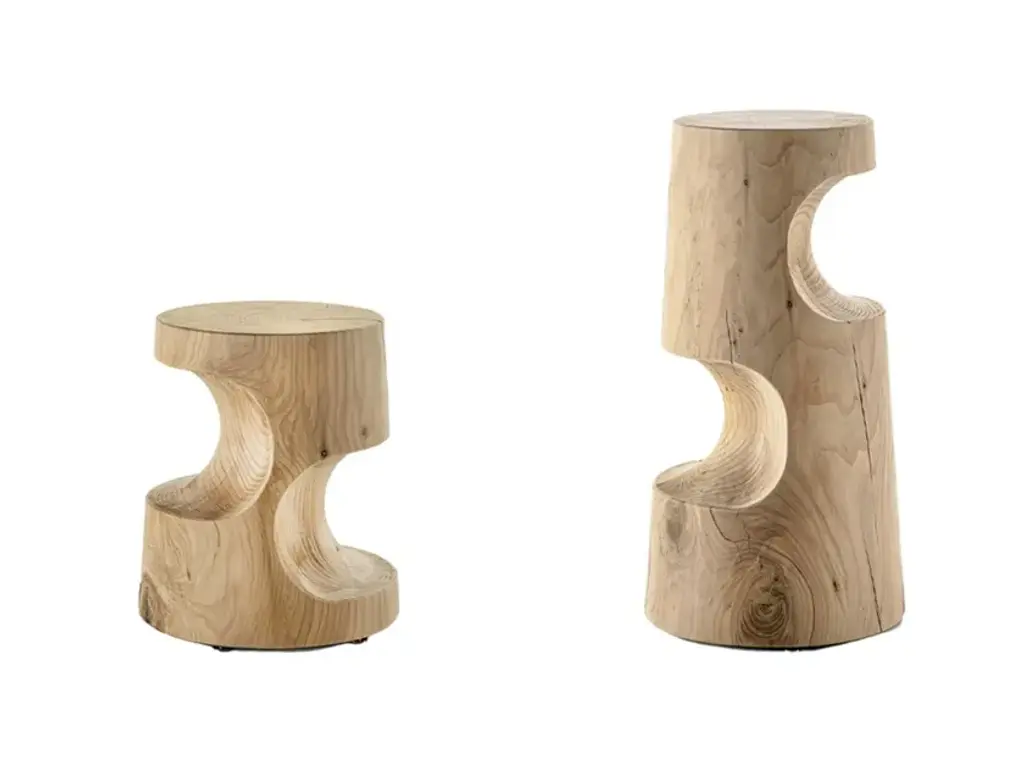 Slalom is a conic stool made of a single block of scented cedar, featuring two opposing cuts on the sides that make its line dynamic. In the high stool the lower recess can be used as footrest.AVAILABLE FINISHES:A7: cedarA8: sandblasted cedarA9: cedar contract finish, vulcano cedar