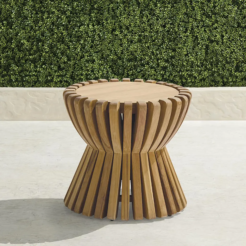 Indulge in the elegant curves and exotic ambiance of the Slatted Teak Outdoor Stool from Unopiu Swing. Handcrafted from teak wood, this garden stool exudes sophistication and luxury. Its sinuous slatted design alludes to Oriental aesthetics, adding an exclusive touch to any outdoor space. Experience pure indulgence with Unopiu Swing.
