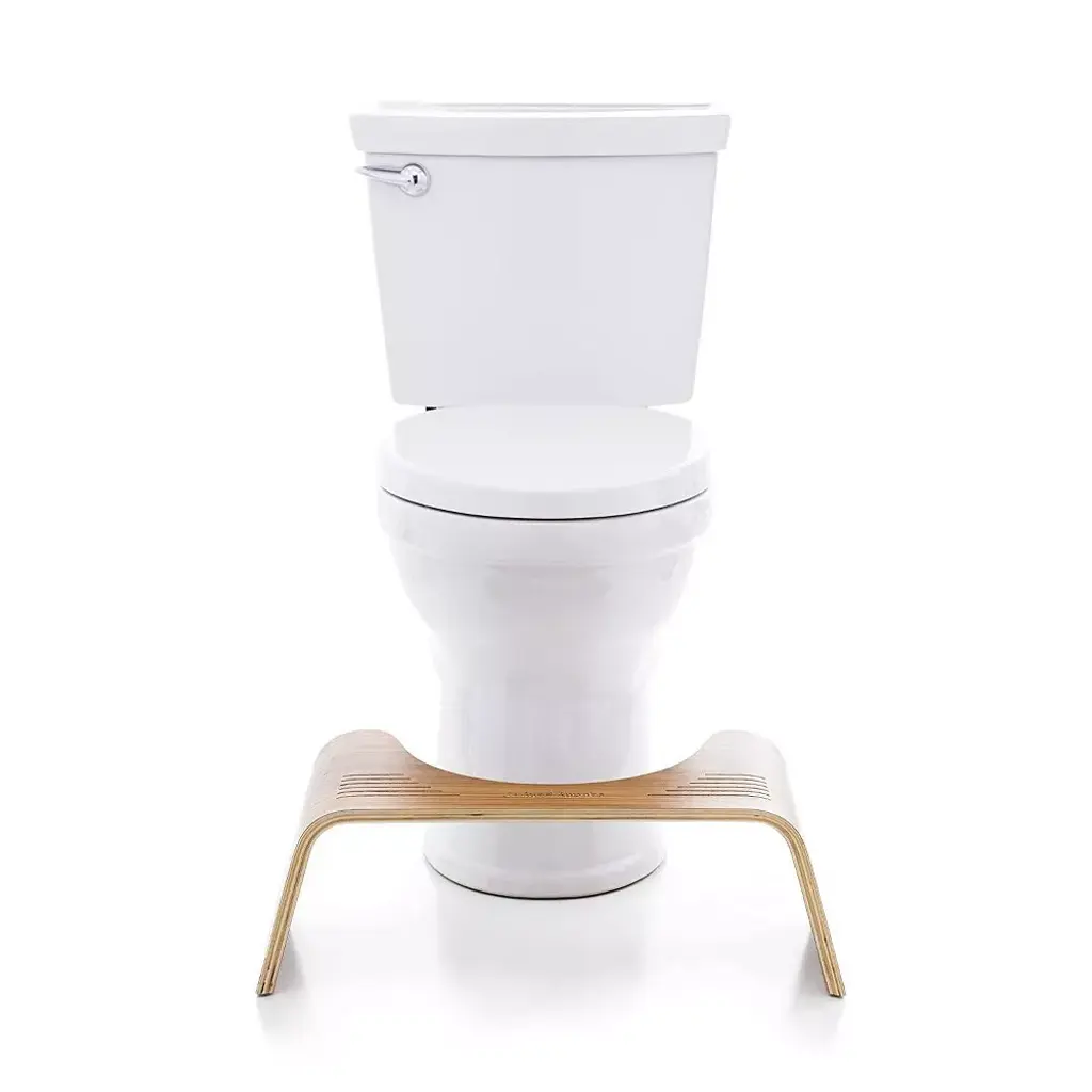 Modern. Sleek. Slim. The Squatty Potty Slim Teak speaks to your urban sensibilities - your appreciation for simple, minimal design. Sculpted out of plywood, with a beautiful teak finish, Squatty has both form and function. The Squatty Potty is a wonderful health aid for the entire family. The Squatty Potty helps you to eliminate faster and more complete by putting your body into a natural squatting position on your own toilet. Using the Squatty Potty during elimination will un-kink your colon, taking your body from a continent mode to an elimination mode. This will speed up the elimination process therefore reducing the risk of toxic build up of fecal matter left in your colon. Using the Squatty Potty Toilet Stool for elimination will reduce straining which helps to heal and prevent hemorrhoids. The Squatty Potty Slim Teak Toilet Stool is attractive and will discretely tuck under your toilet bowl when not in use. Its designed with a forward slant to ergonomically align the body for a comfortable and complete elimination. Adults and Children love the Squatty Potty. It is an excellent toilet training aid for kids and provides them with a place to support their feet which helps to remove the fear of falling. They also don't have a need to hold onto the dirty toilet seat for balance.